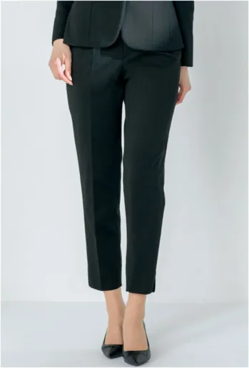 着痩せシルエットのテーパードパンツ。くるぶし丈で裾上げしており、裾のサイドにはスリットを入れています。機能美を叶える4つのポイント!