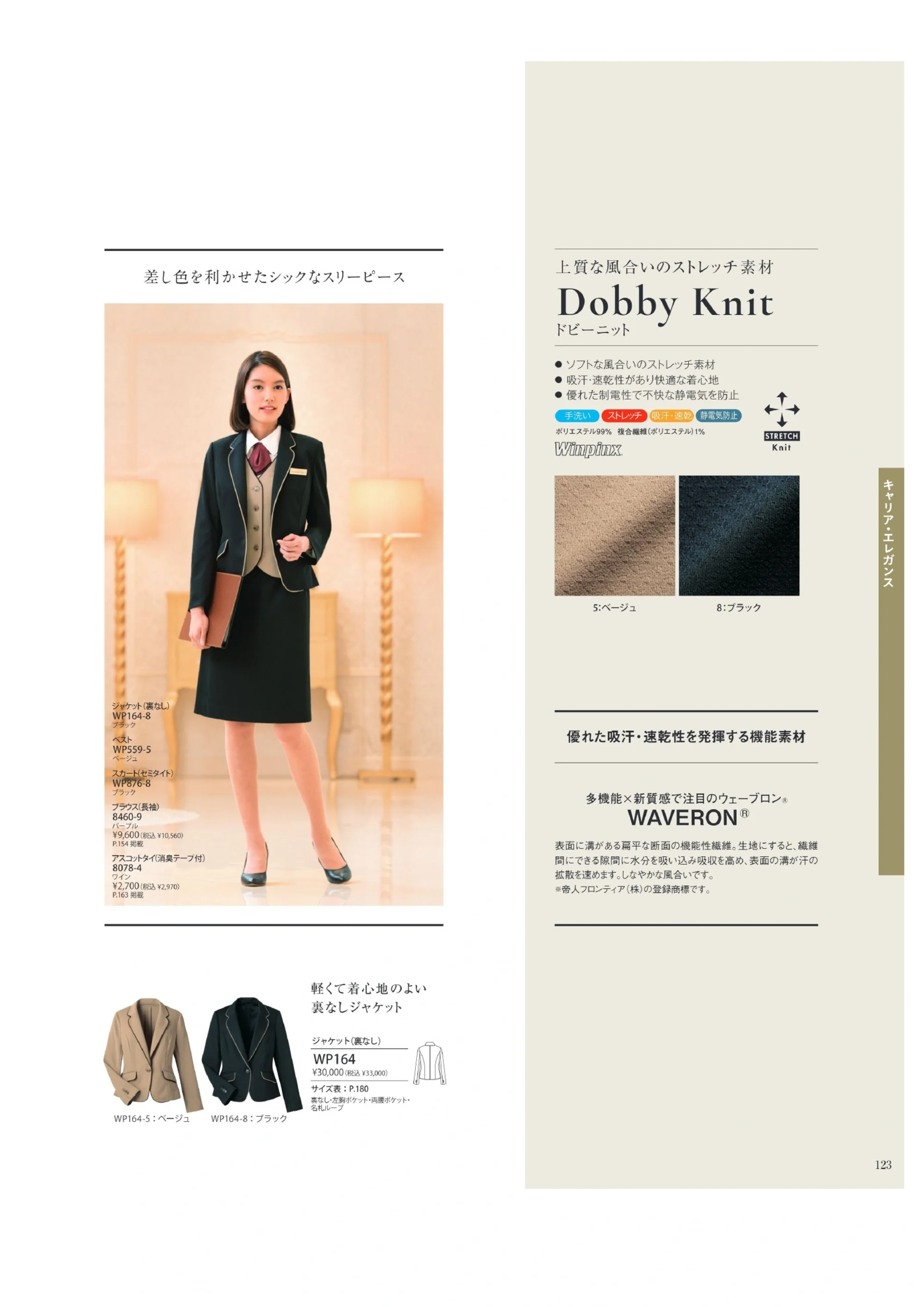 ●細身シルエットでも着心地はラク。すっきりと女性らしく着こなせるコンパクトはシルエットは、ストレッチが効いていて動きやすい。