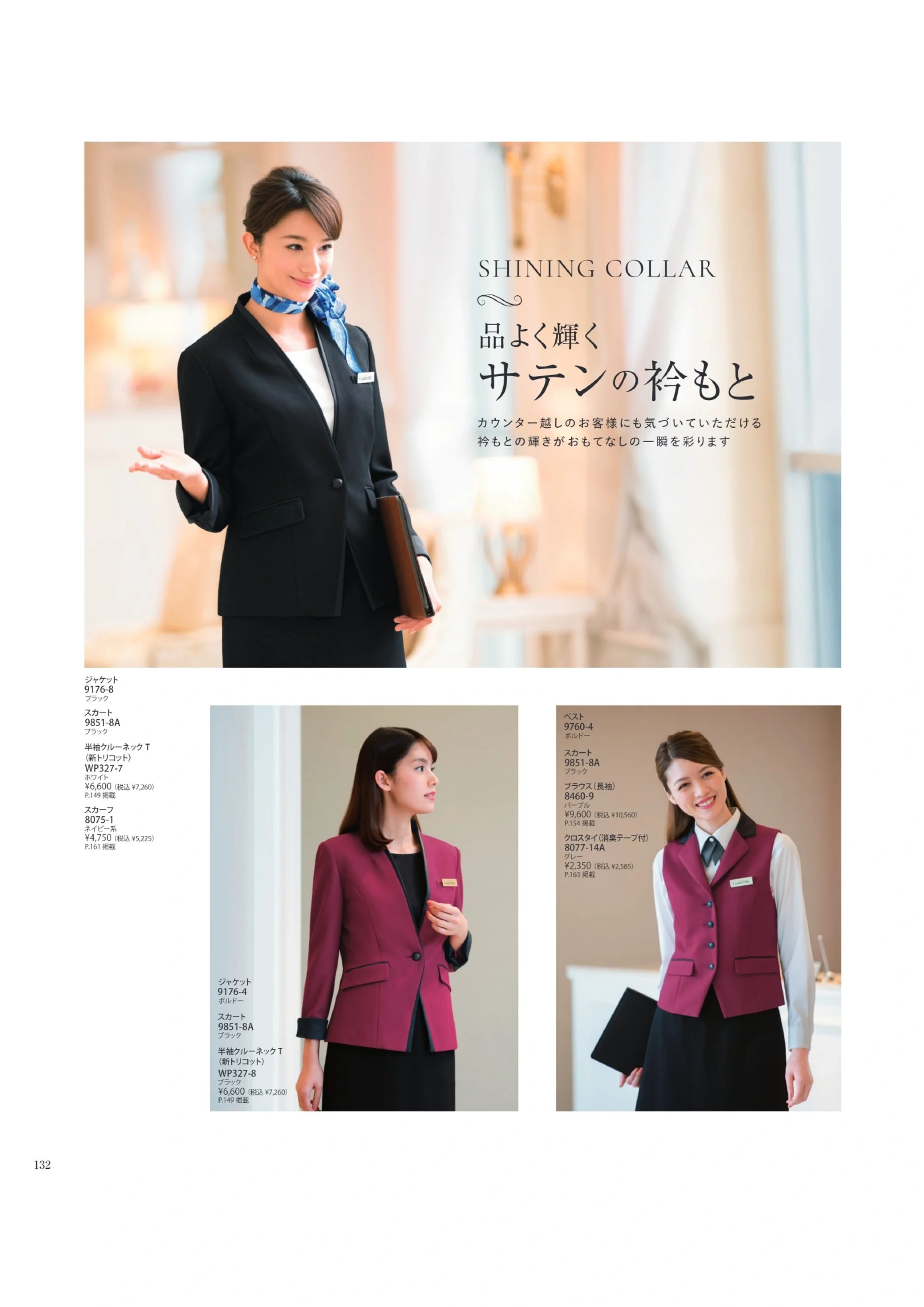●ネックまわりがおしゃれにキマル。計算された衿デザインは、スカーフを合わせると華やかな印象に。もちろんリボンタイとも好相性。