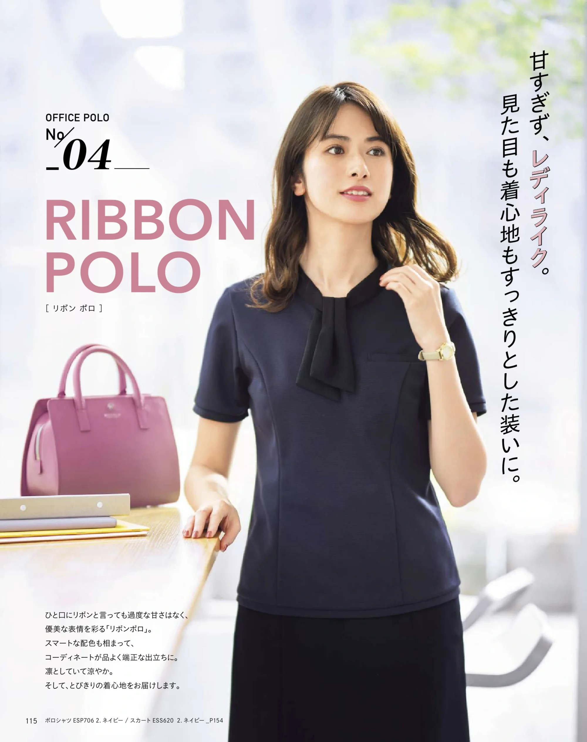 オフィスポロに、洗練を極めた新作が登場。エレガントな衿配色とリボンが、“きちんと感”を高め、ひときわスマートなスタイルに。このデザインが「オフィスポロ」のNewベーシック!