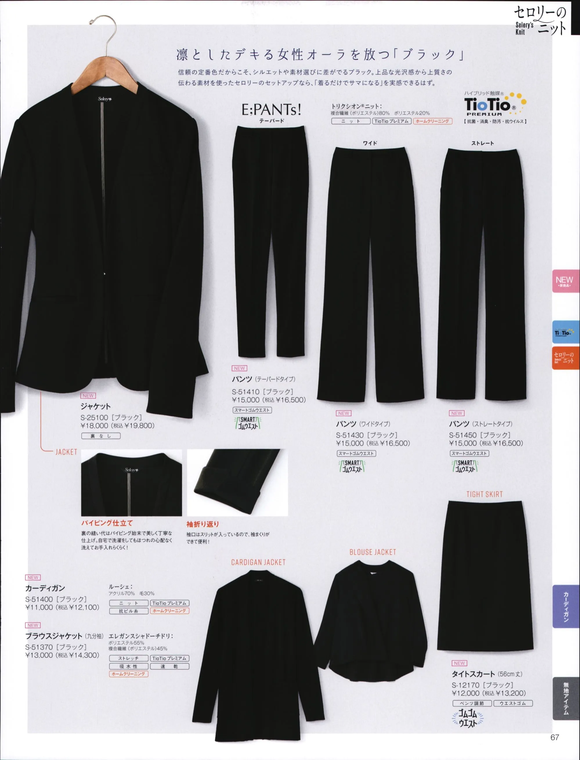 凛としたデキる女性オーラを放つ「ブラック」信頼の定番色だからこそ、シルエットや素材選びに差が出るブラック。上品な光沢感から上質さの伝わる素材を使ったセロリーのセットアップなら、「着るだけでサマになる」を実感できるはず。