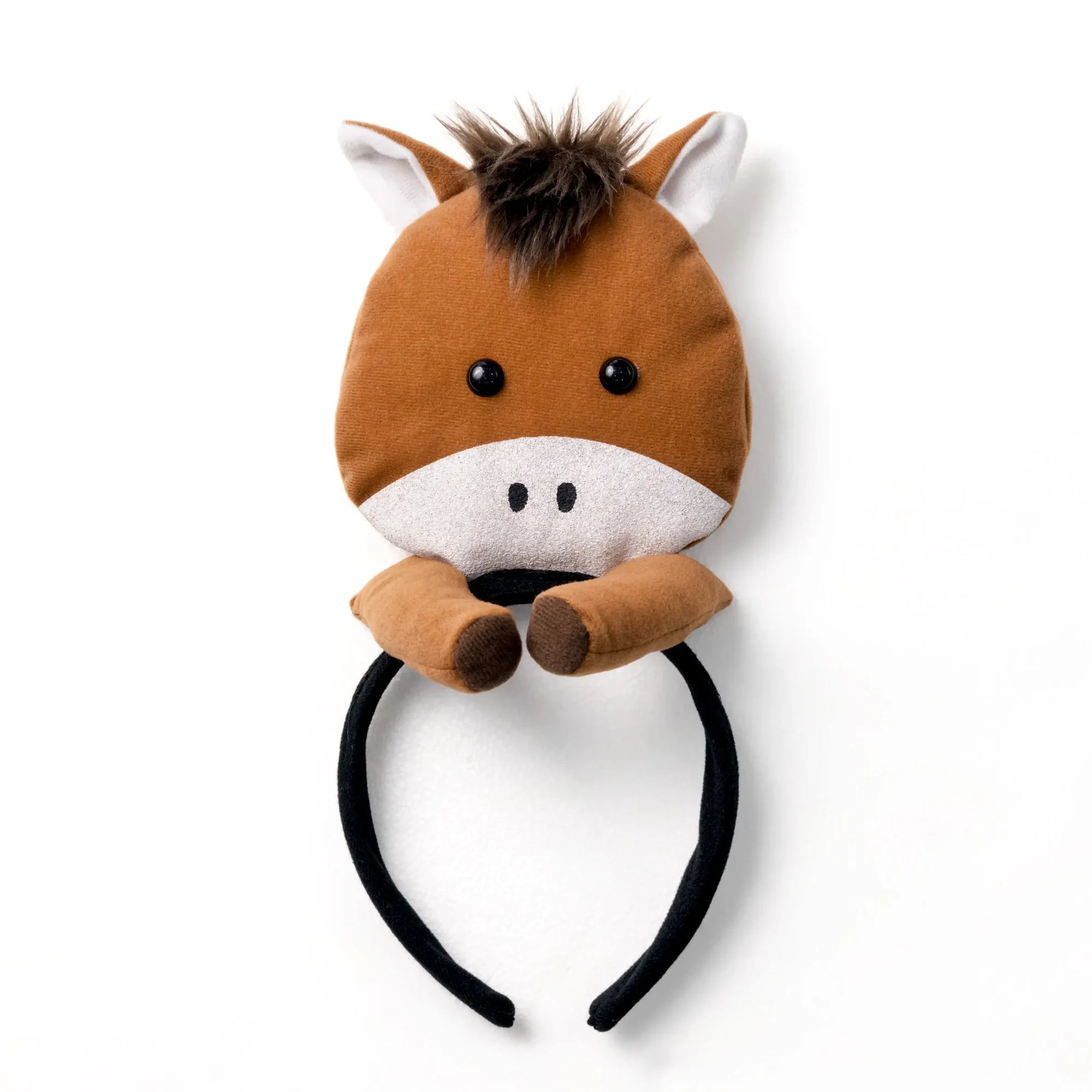愛らしい瞳とふさふさの前髪が特徴の、茶色いお馬さんモチーフのカチューシャ。のんびりとした表情がどこか癒しを感じさせるデザインです。お正月やお祭り、宴会、余興、イベント、ハロウィン、仮装マラソンなど、さまざまなシーンのアクセントに。フリーサイズ仕様で、性別を問わず着用いただけます。