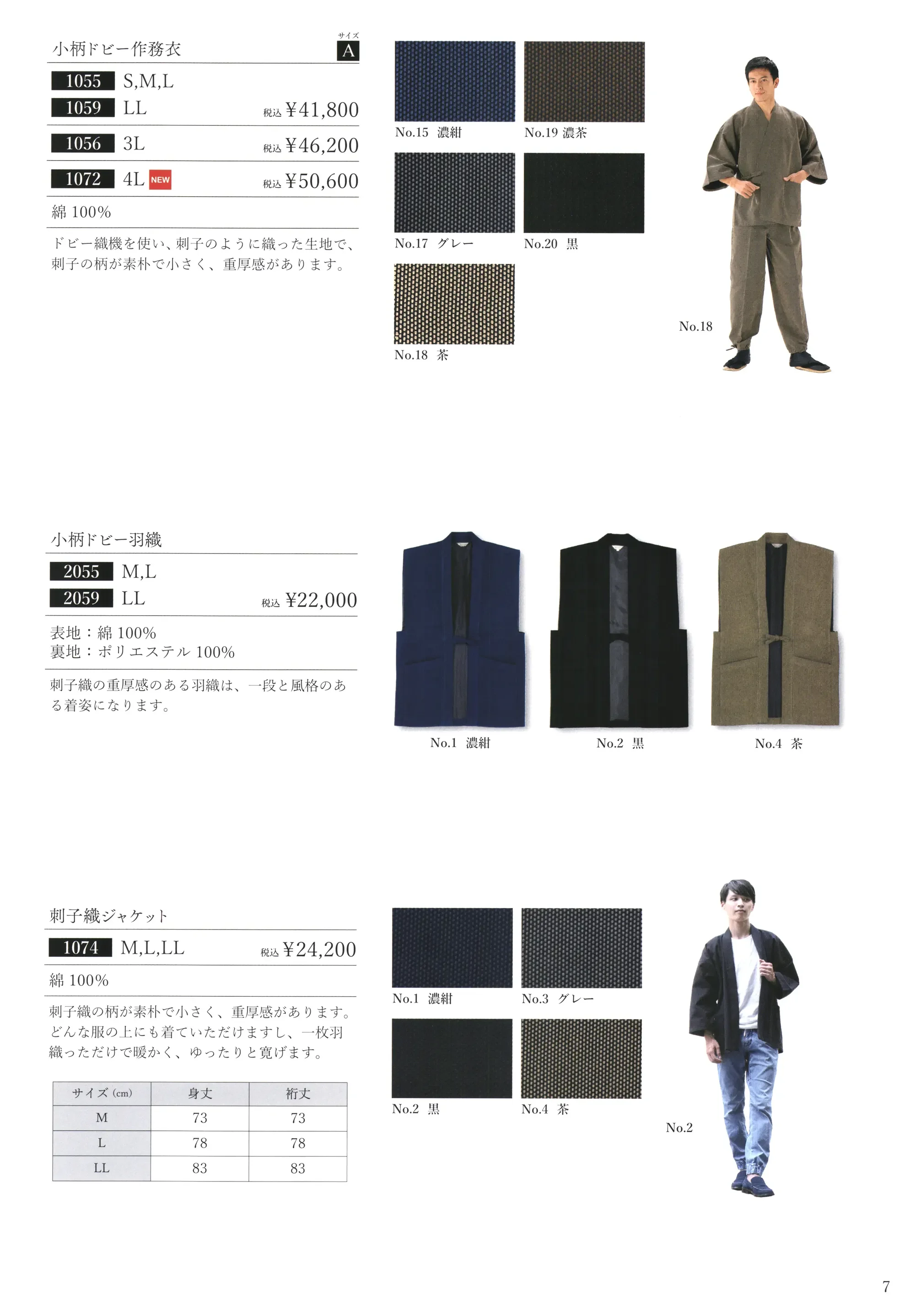 「IKISUGATA」商品名の小柄ドビーというのは、ドビー織機(しょっき)で織ったドビー織という織物を使用しているためです。ドビー織機は連続した模様が規則正しく織り出されているのが特徴で、その模様はドビー柄といわれます。細かくもしっかりとした刺子(さしこ)の柄を織った、この小柄ドビー作務衣は、生地も厚めで秋冬に暖かく着用していただくのに適しています。※上下セットです。