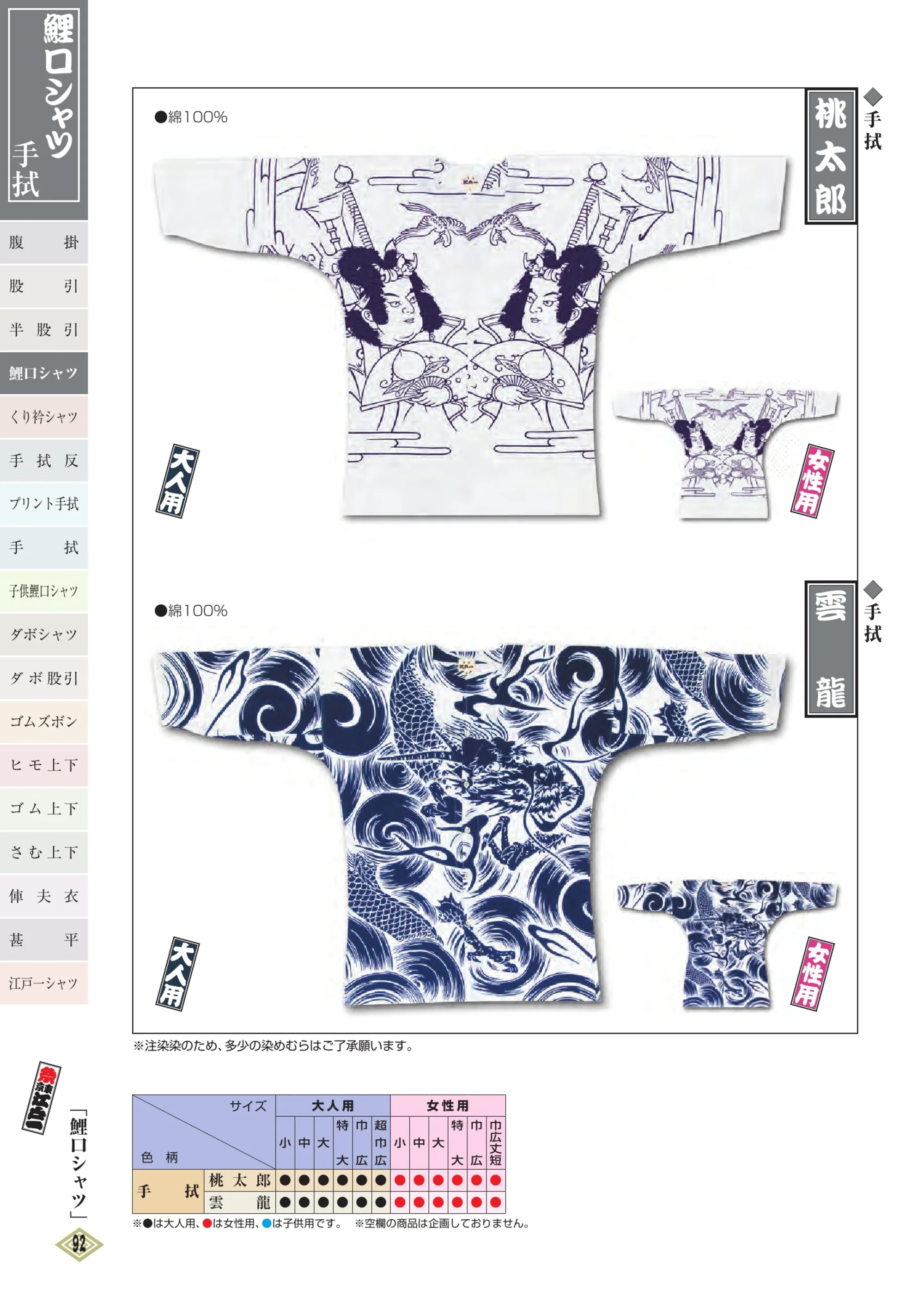 TENUGUI-KOI-26 鯉口シャツ(手拭)(大人) 雲龍