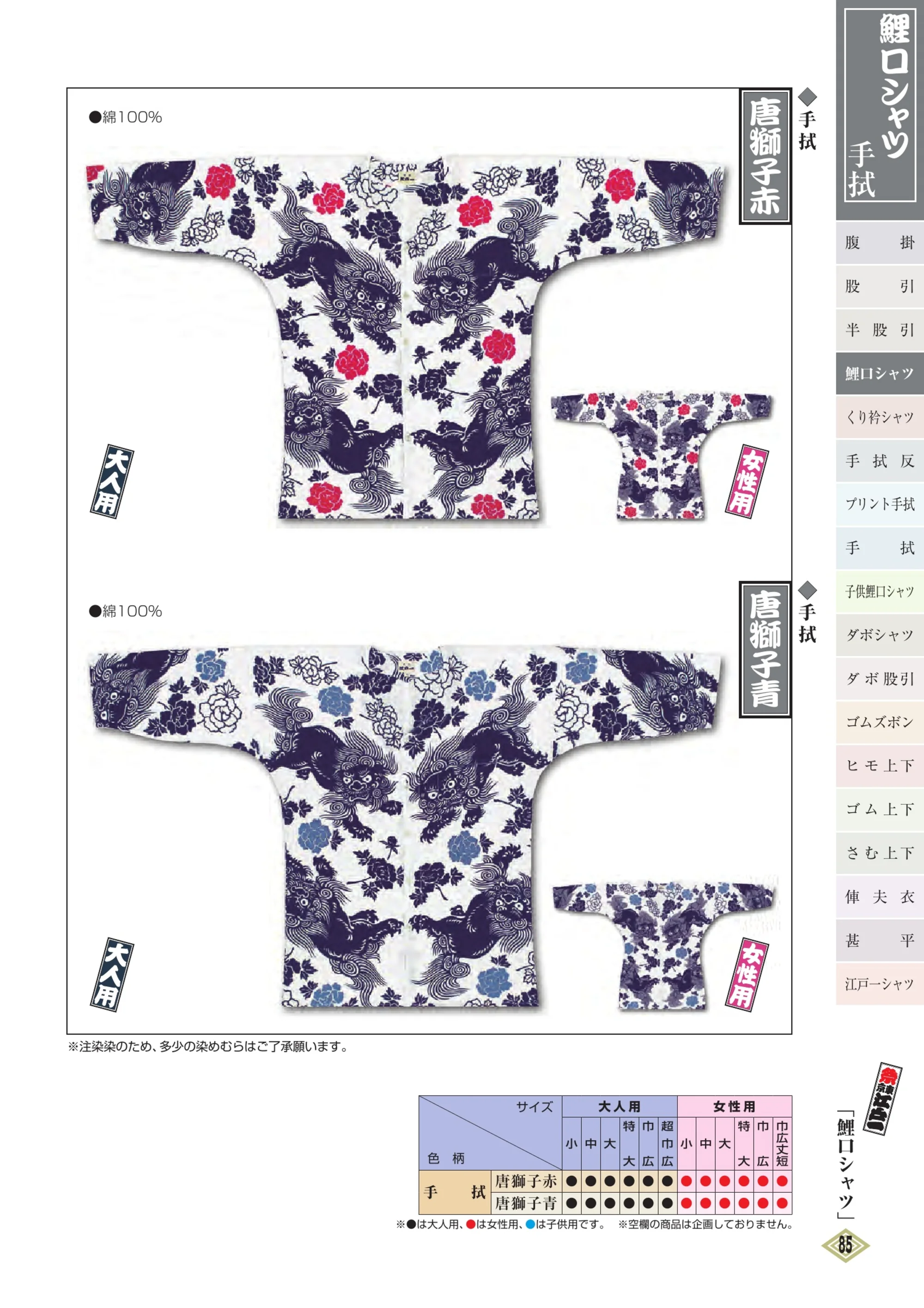 鯉口シャツ(手拭)(子供) 唐獅子青