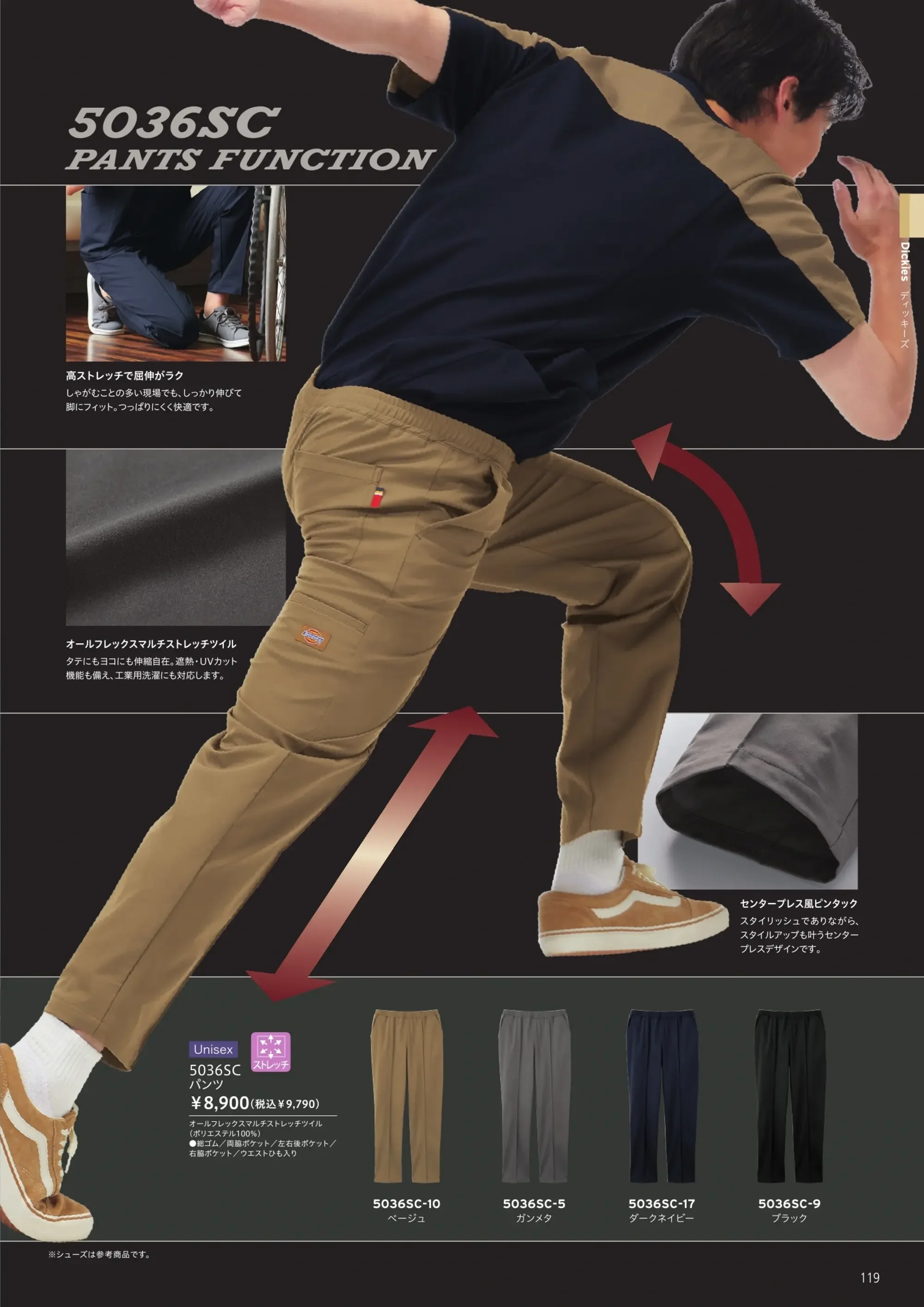 高いストレッチ性と機能性を兼ね備えたDickiesの作業用パンツです。全方向に伸縮するオールフレックスマルチストレッチツイル素材を採用し、屈伸作業が多い現場でもストレスなく動けます。タフさと快適さを両立したワークウェアです。