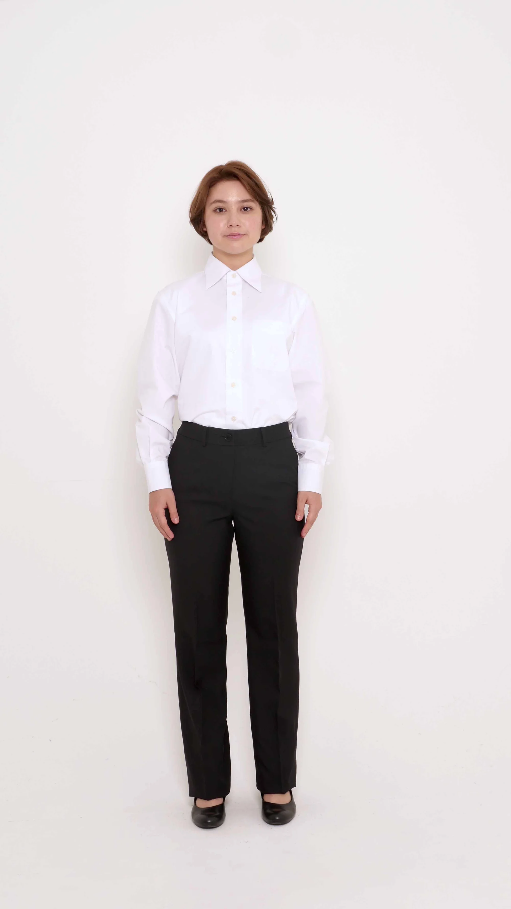 水を弾き、汚れがつきにくい、飲食にはうれしい撥水加工。伸縮例があり、動きやすいストレッチ素材。ポリエステル100%でシワになりにくく、いつでもスマート。端正なフォーマルスタイルで、最高のおもてなしを。