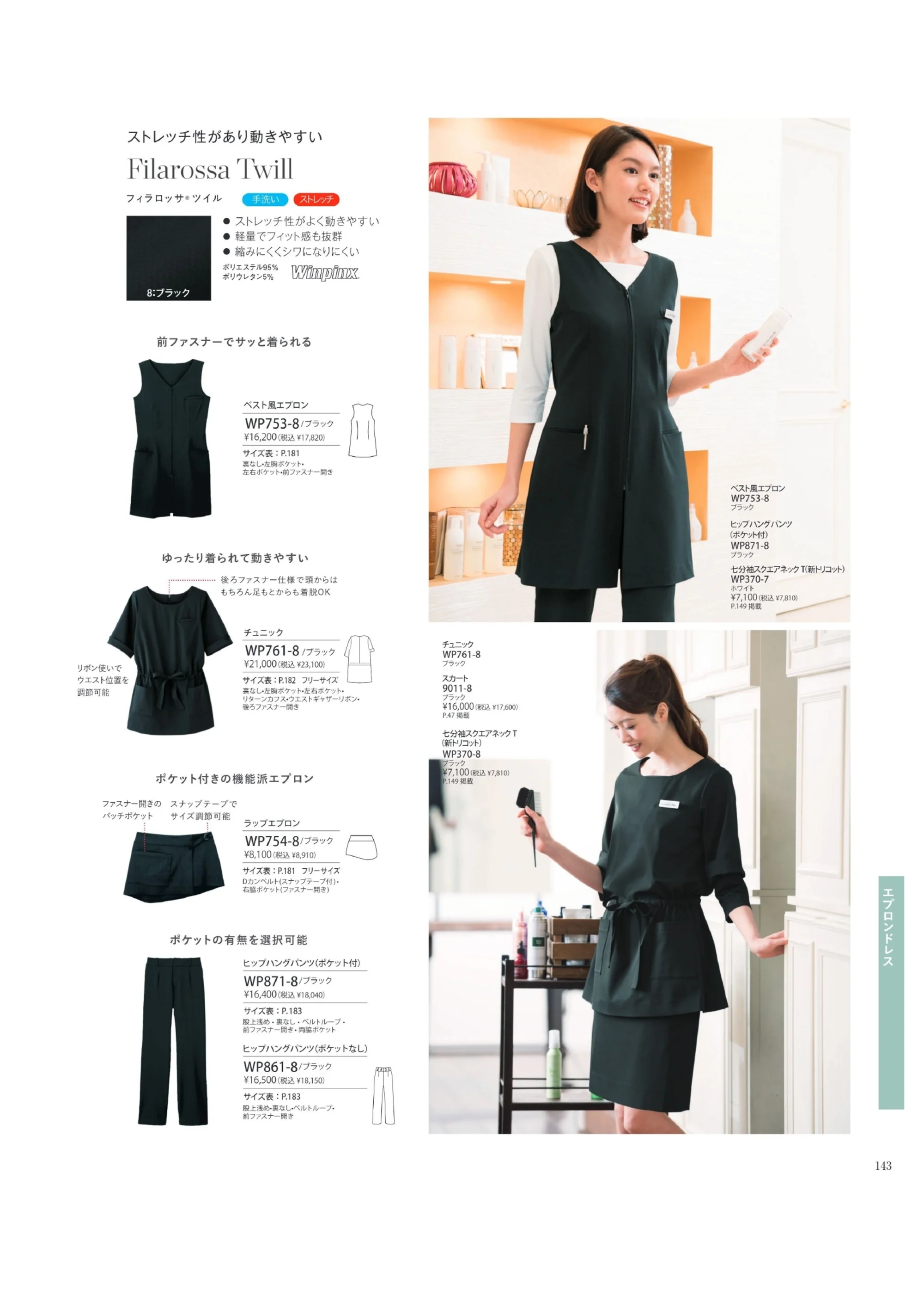 「ライクラ®」との融合で生まれたストレッチ織物。軽量でストレッチ性に富み、抜群のフィット感を発揮。耐久性にも優れ、縮みにくく、シワになりにくい素材です。 ふるまいを美しくスマートに見せるフレキシブルな着心地と多彩な機能。パフォーマンス性の高さに加え、きちんと感と清潔感をキープ。コンパクトなシルエットとスッキリしたフォルムを保ちながらもストレッチ性の高さが魅力です。ビューティーサロン、エステティックサロン、ブティック、ジュエリーショップなどに。