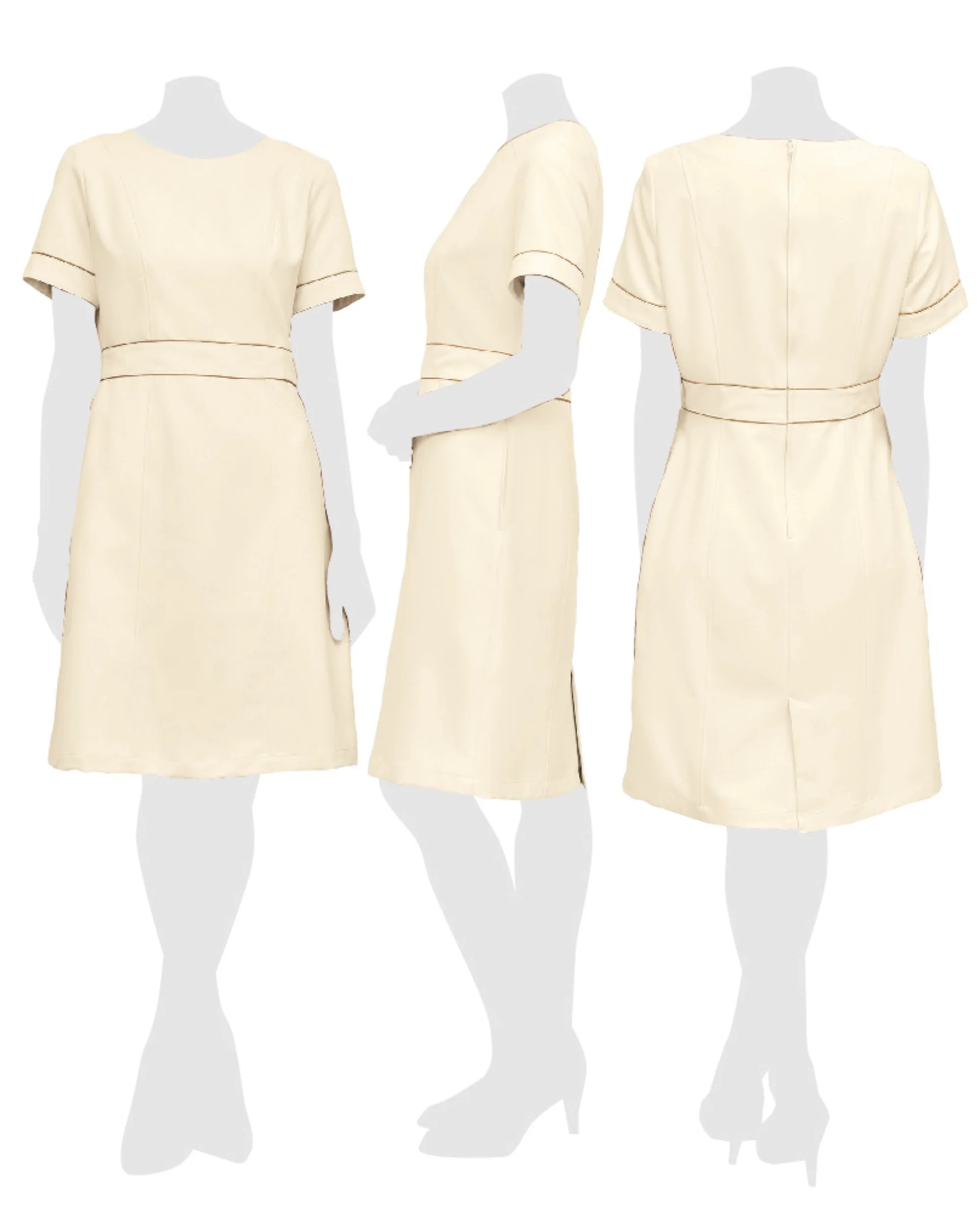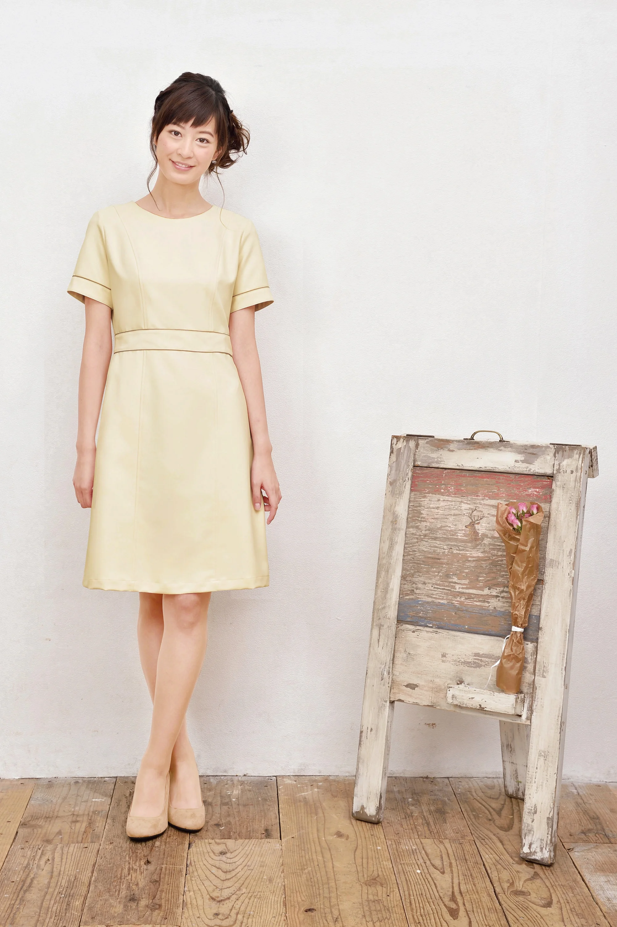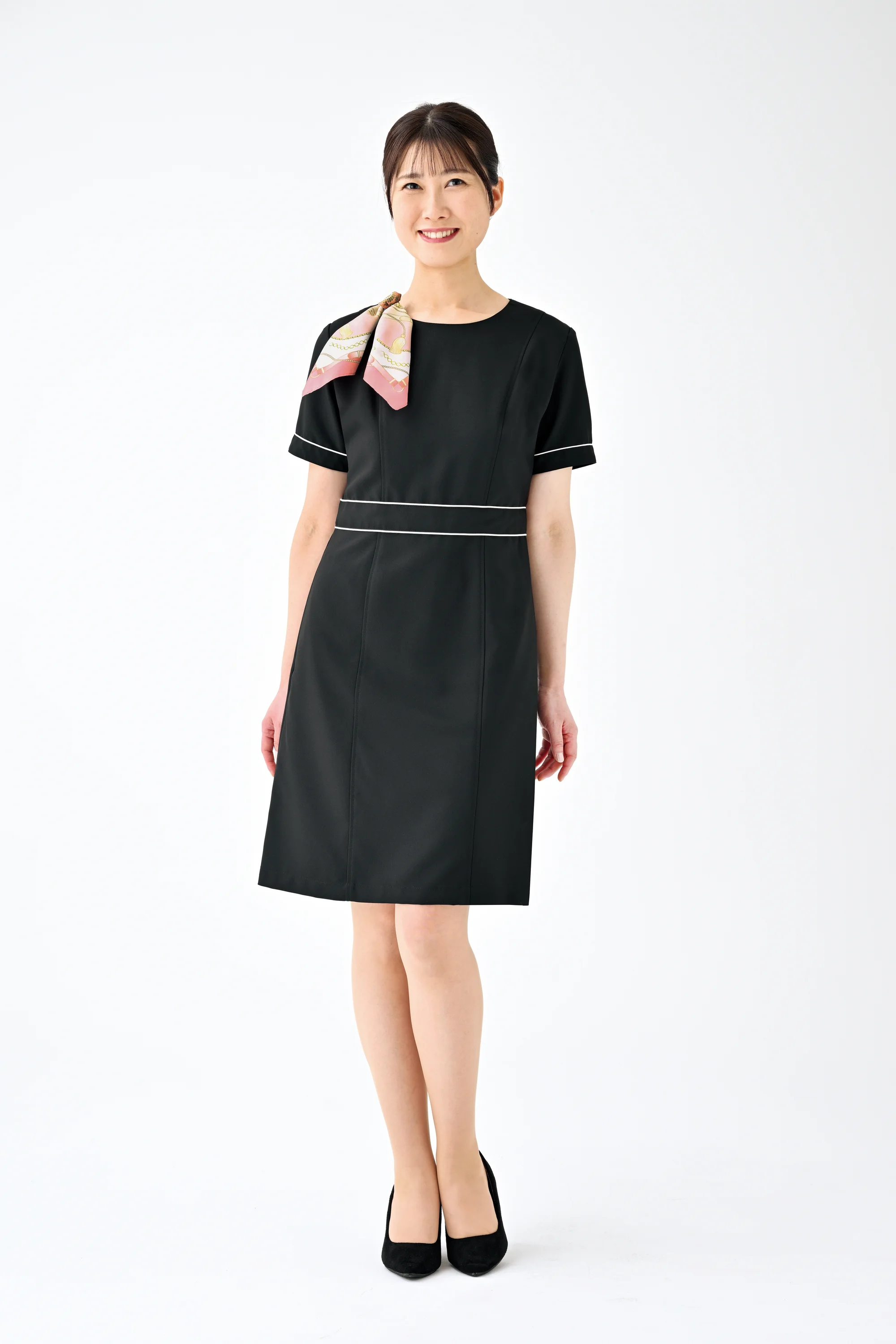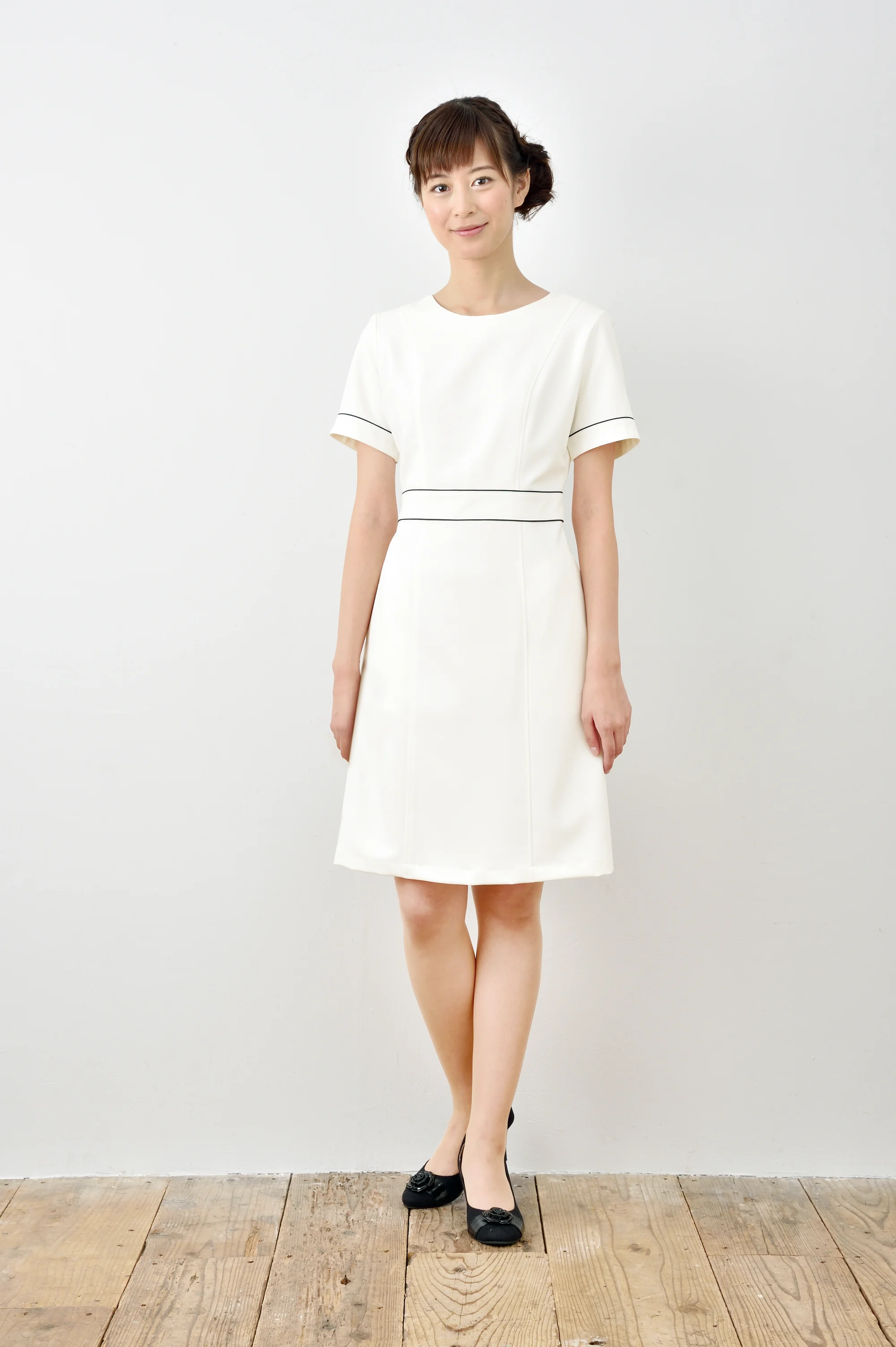 配色のパイピングが魅力的。すっきりとしたシルエットのワンピースに、配色カラーのパイピングがポイント。少し高めの位置にウエストのラインがあるので、スタイル良く着こなせます。ネオクラシックのユニフォームはこだわりの高機能素材を使用しています。