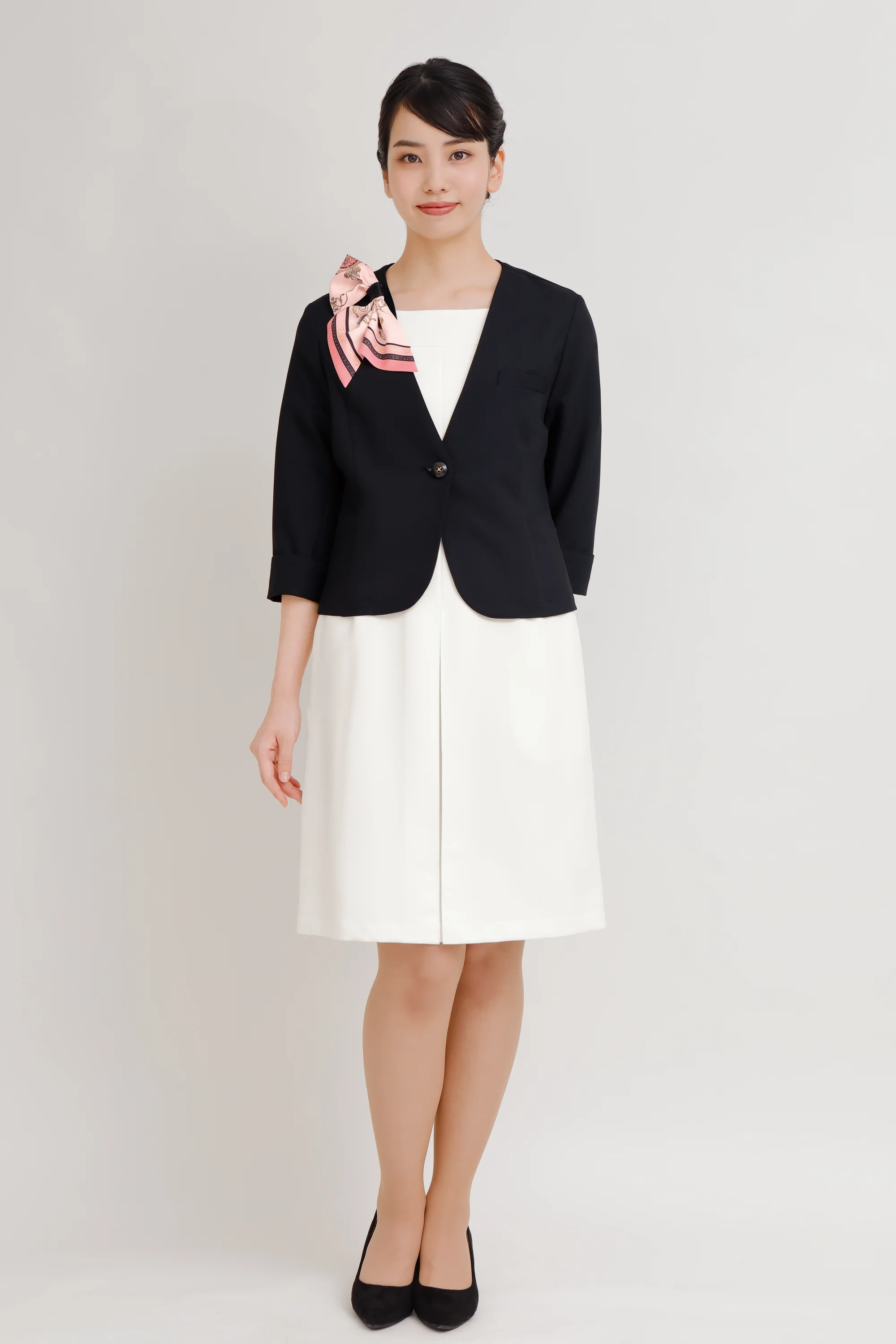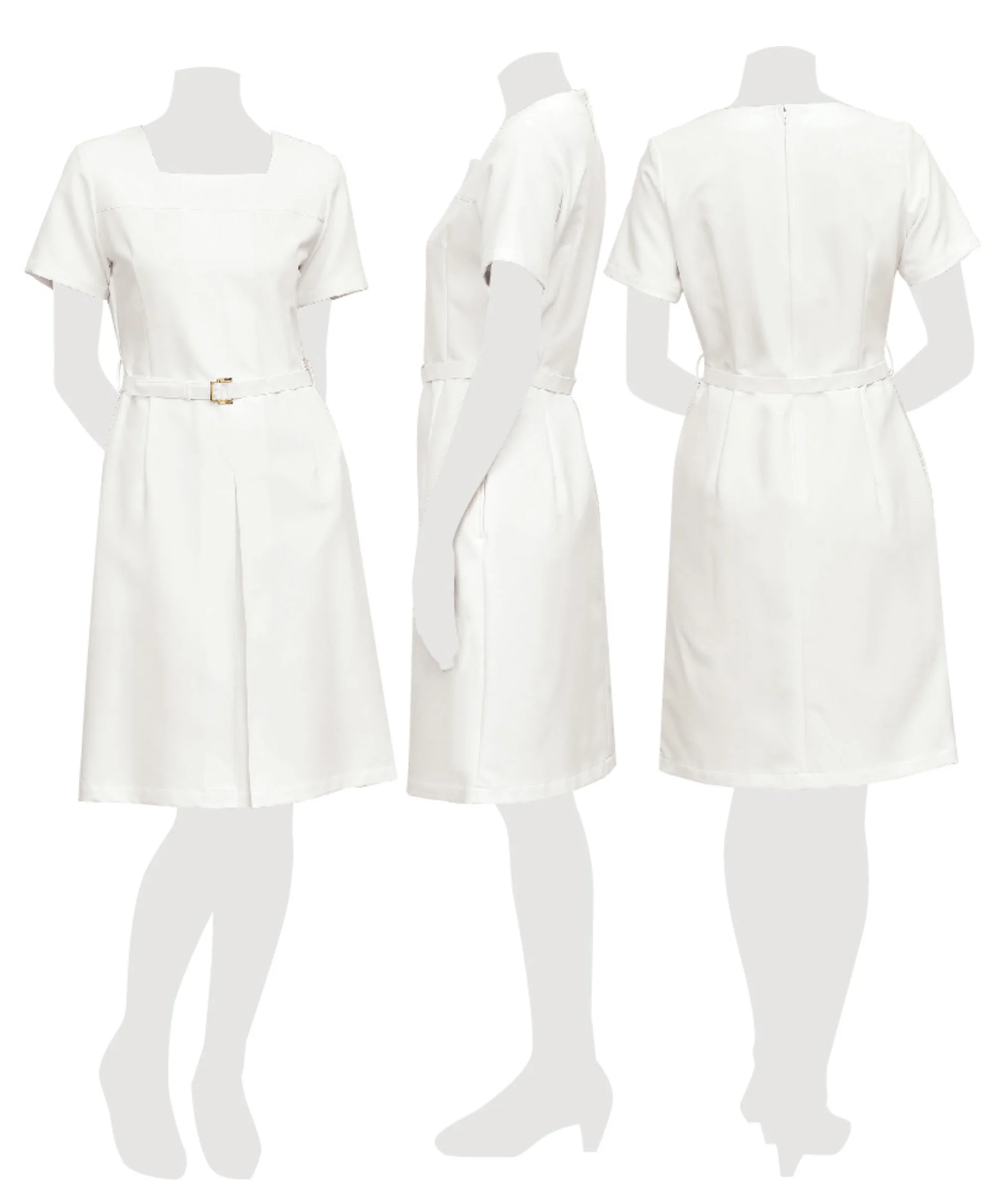 ベルトのアクセントで存在感を。誰にでも上品に着こなせるシンプルなデザインに、オシャレ感のある共布のベルトを合わせたスタイル。スカートの前のボックスプリーツにより、動き易く、足を開く作業でも安心。ジャケットを合わせるときちんとした印象を与えます。ネオクラシックのユニフォームはこだわりの高機能素材を使用しています。