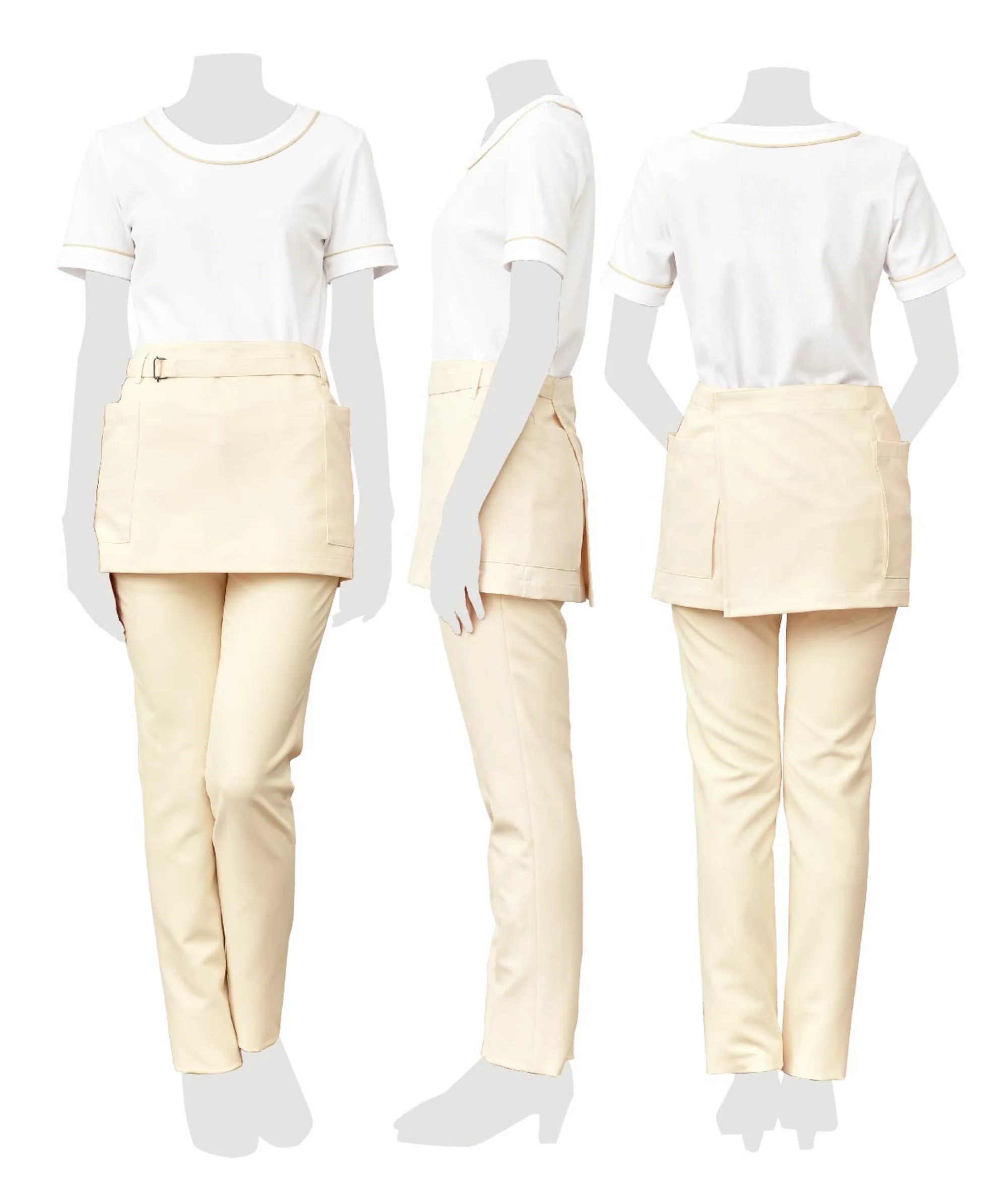 | 形状特長 | 両脇ポケット付。 ウエストベルトバックル付。 |