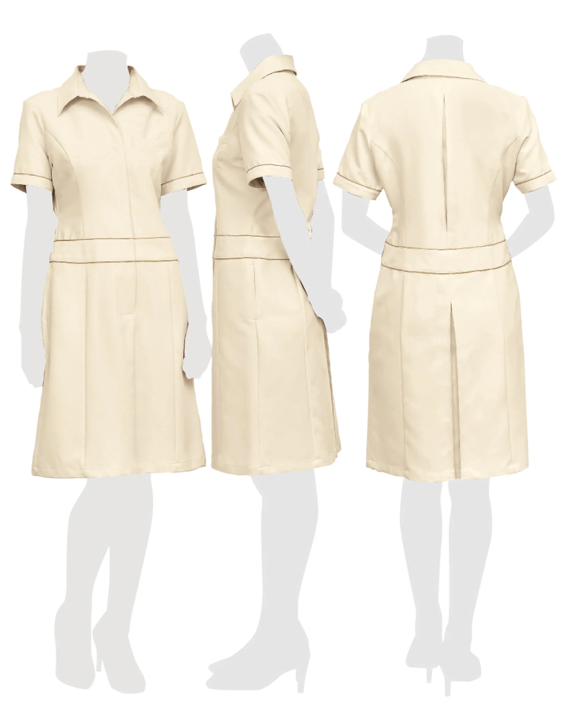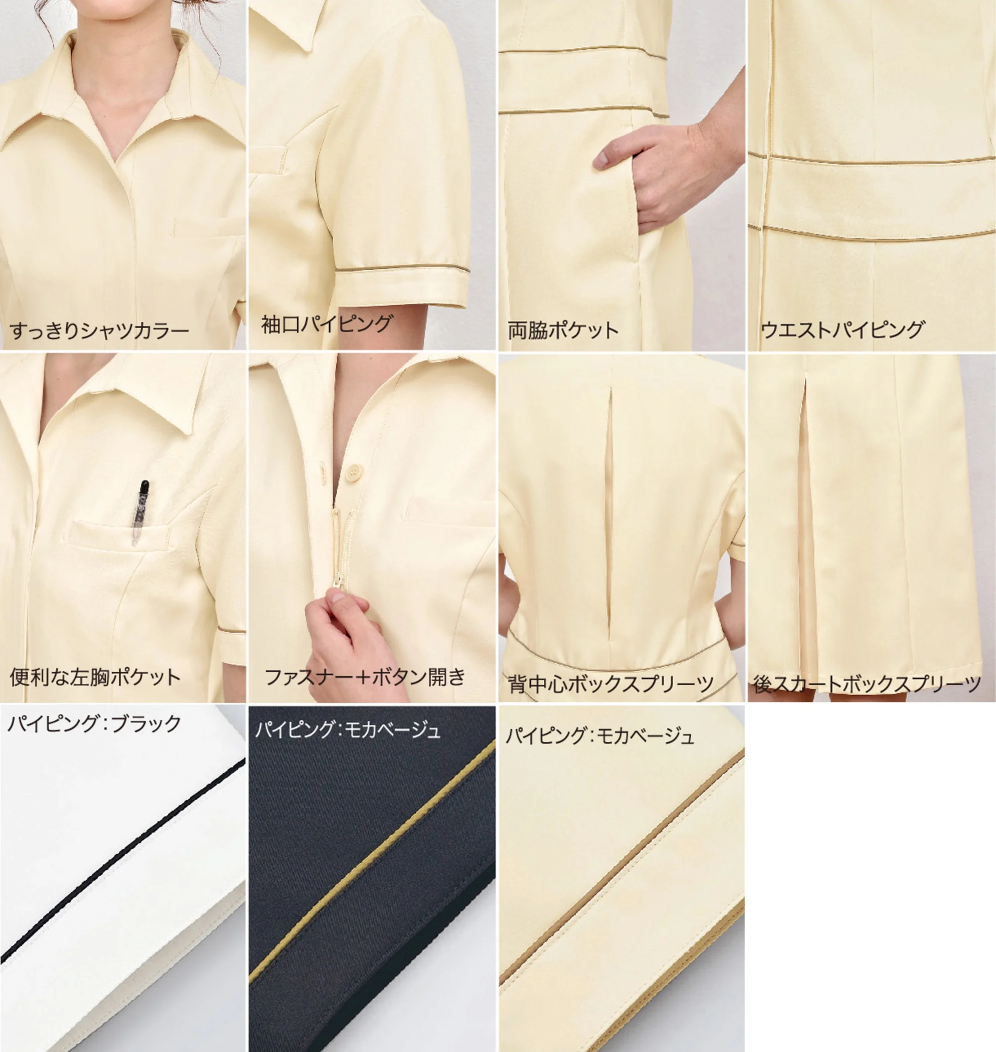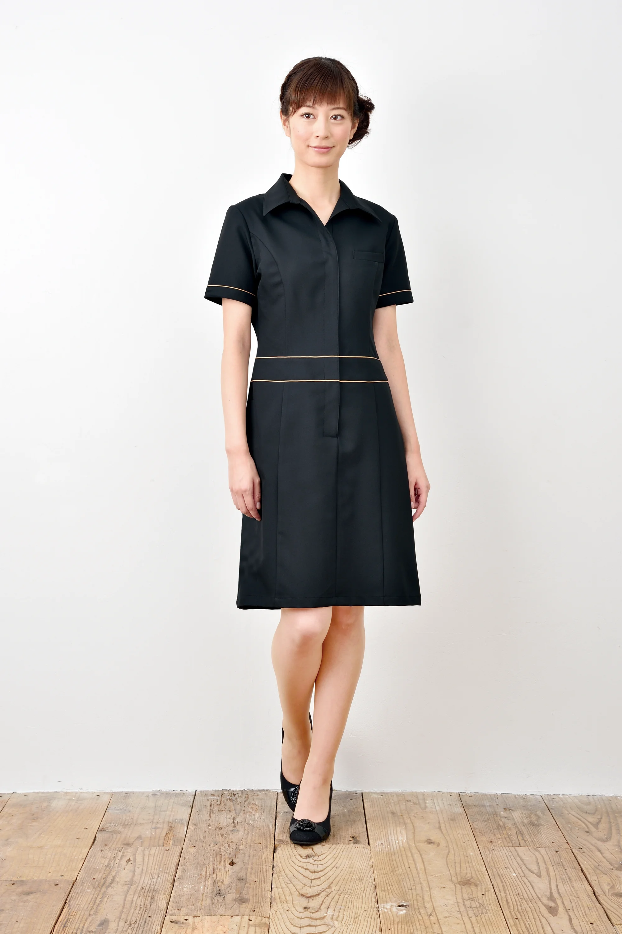 洗練されたエレガント。ローウエストの切り替えとパイピングの配色が存在感のあるワンピース。品のある色合いがエレガントな印象です。ネオクラシックのユニフォームはこだわりの高機能素材を使用しています。