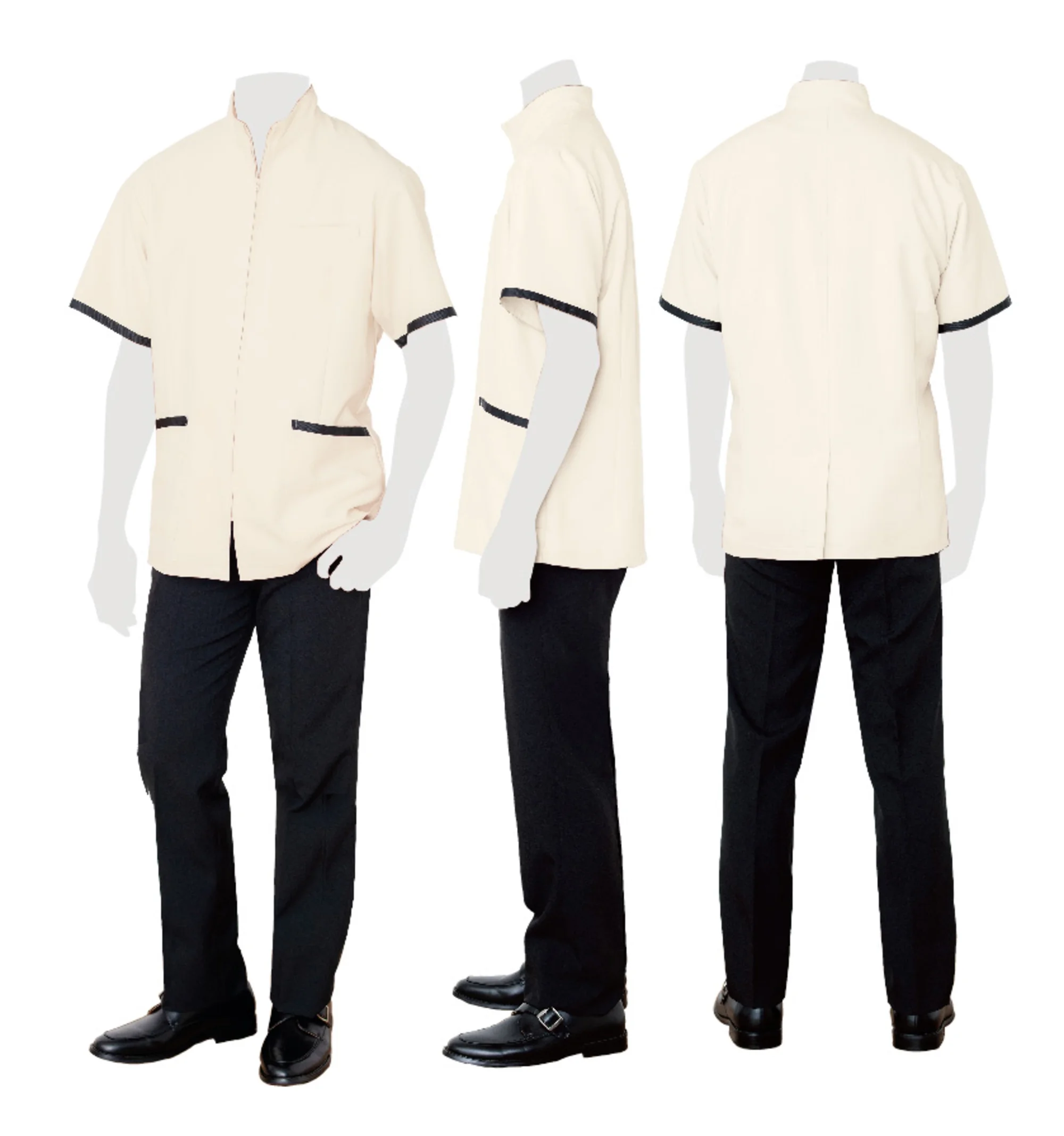 女性の美しいユニフォームにお似合いの男性用ユニフォームができました。ネオクラシックタイプの美しいラインです。| 使用素材 | なめらかストレッチ(セオアルファ使用) ポリエステル100% |