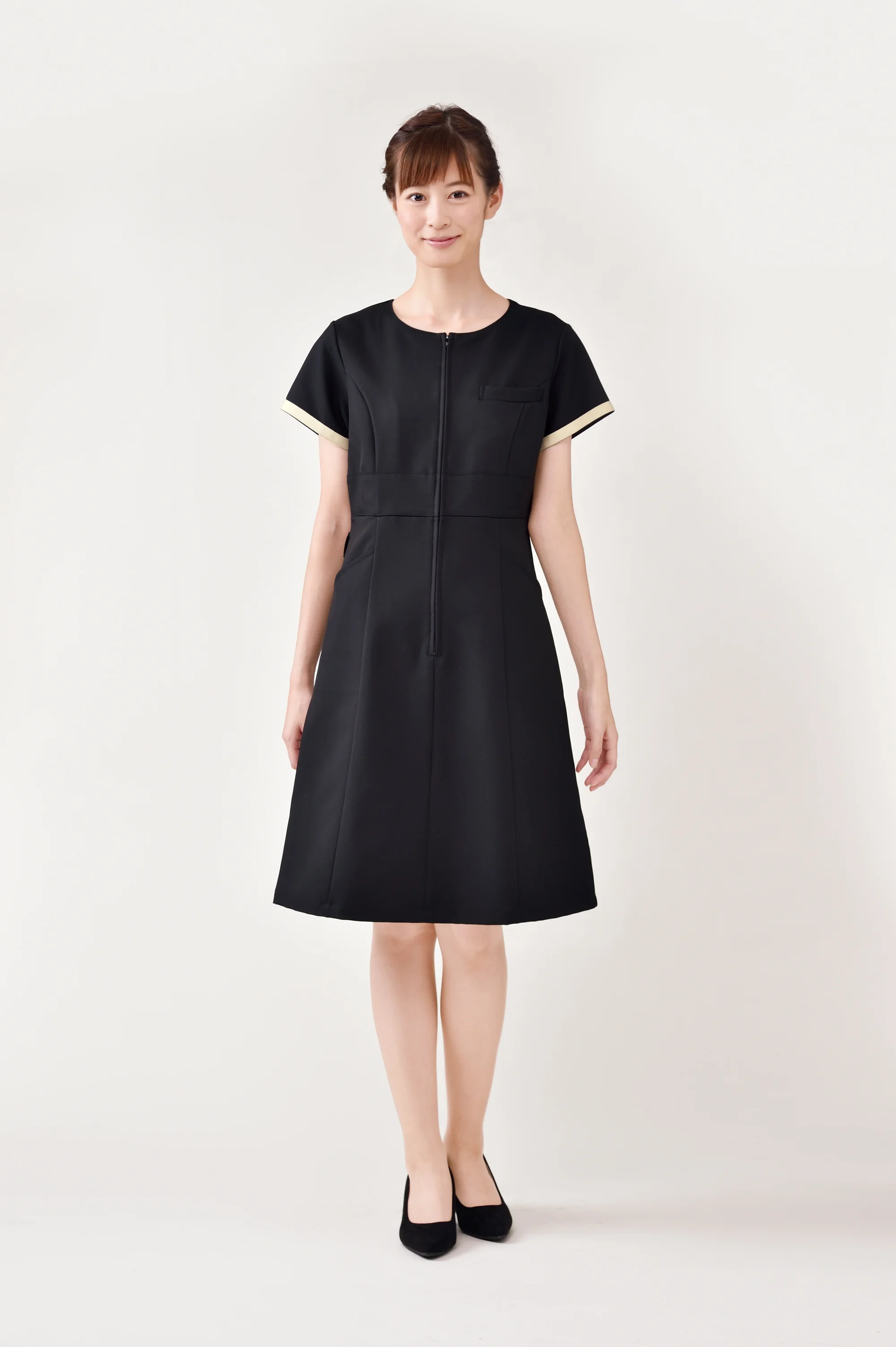 着脱のしやすい前開きファスナーに動かしやすい袖。圧倒的な快適さ!それなのに洗練度高めのデザイン性が◎。足が開きやすい広めの裾まわり。さらに各部分の細かいディテール。満足度高めのワンピースです。