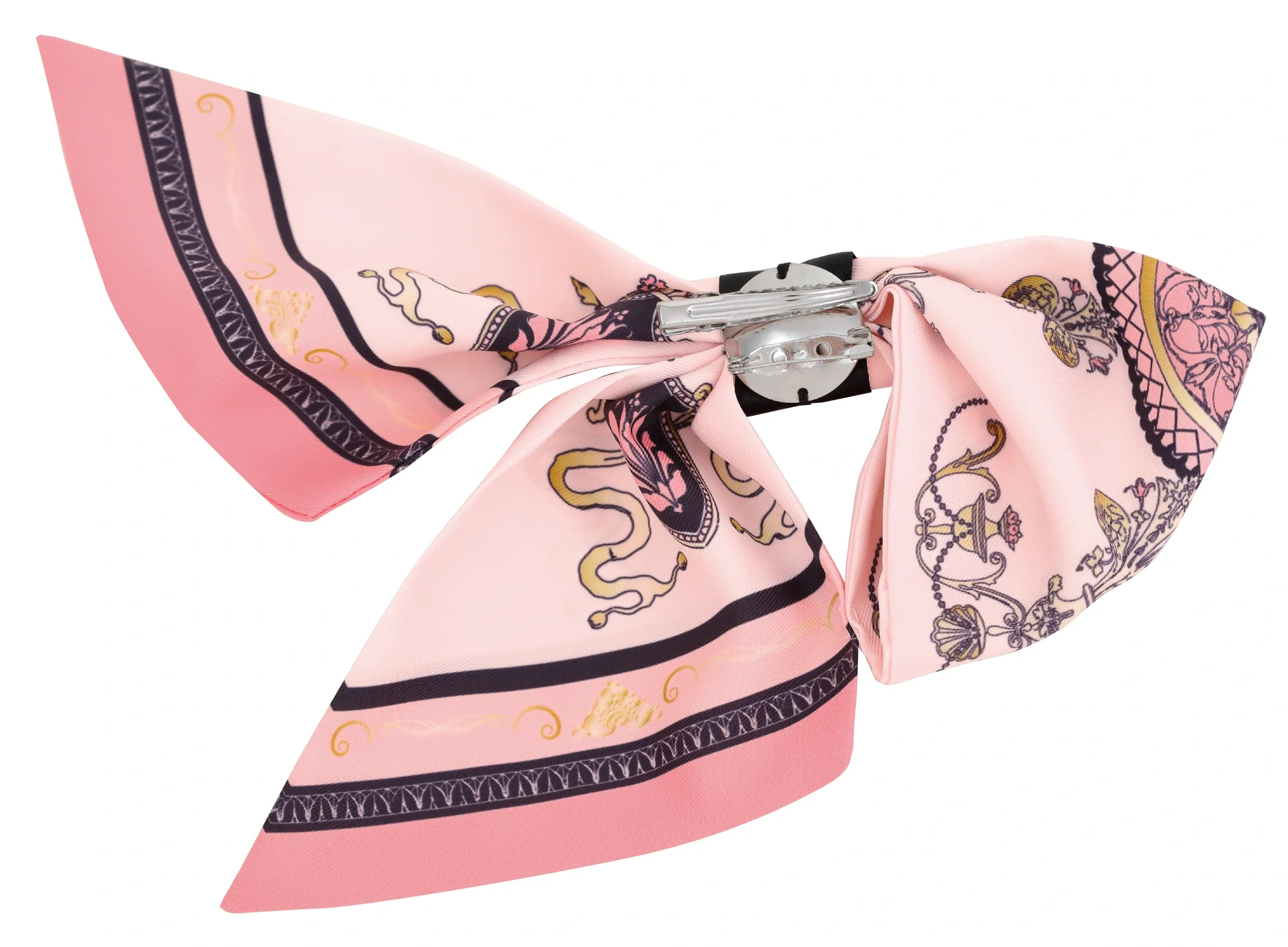 襟もとに華やかさをプラス着こなしのポイントになる華やかなリボンスカーフ。これ一つプラスするだけでワンランク上の装いに。クリップ&ブローチピンの二重構造のため、場所を選ばず簡単に装着が可能です。
