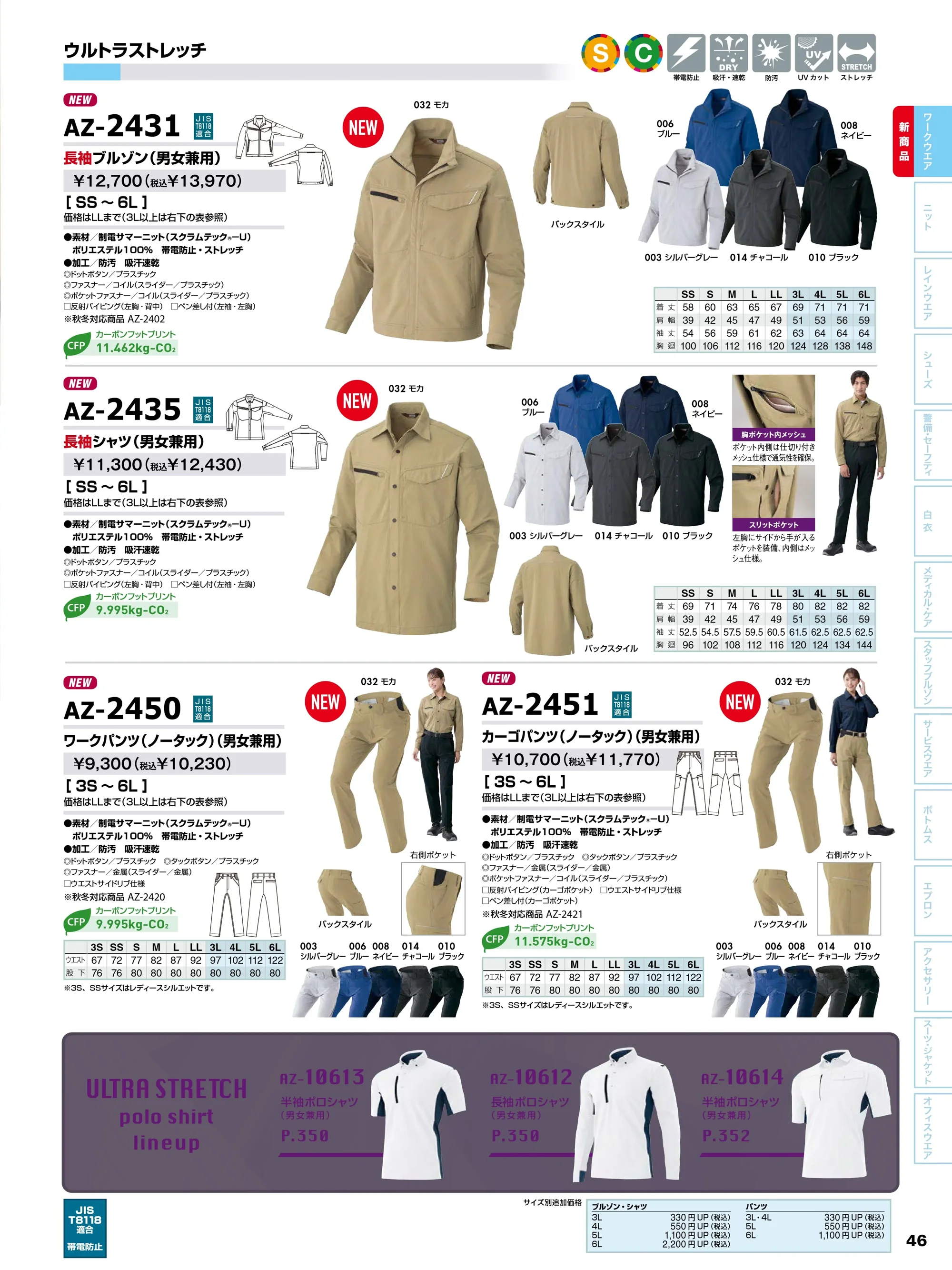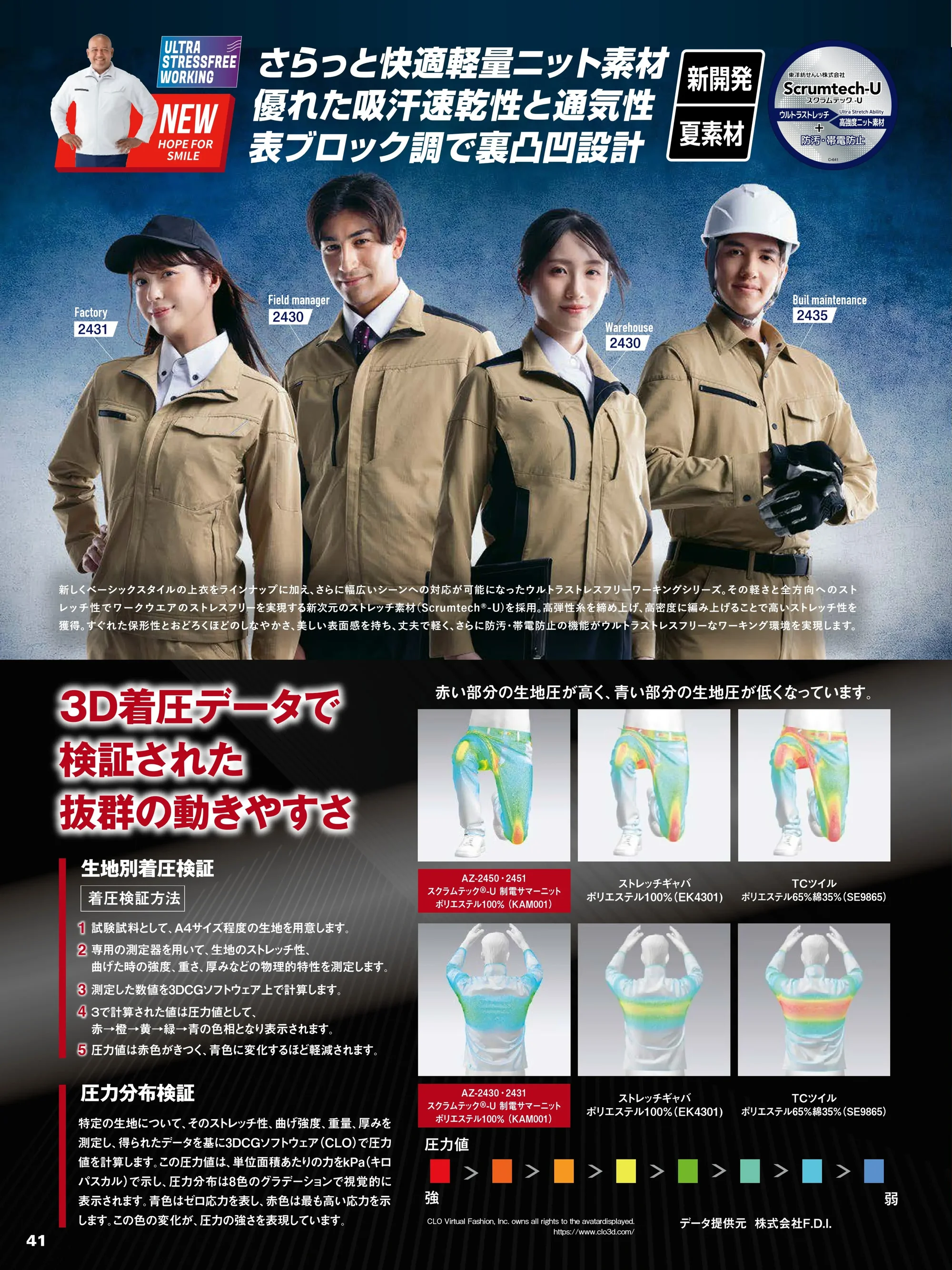 | 素材特長 | ストレッチ・軽量・吸汗速乾・帯電防止(JIS T8118適合)・UVカット(UPF50)・防汚 |