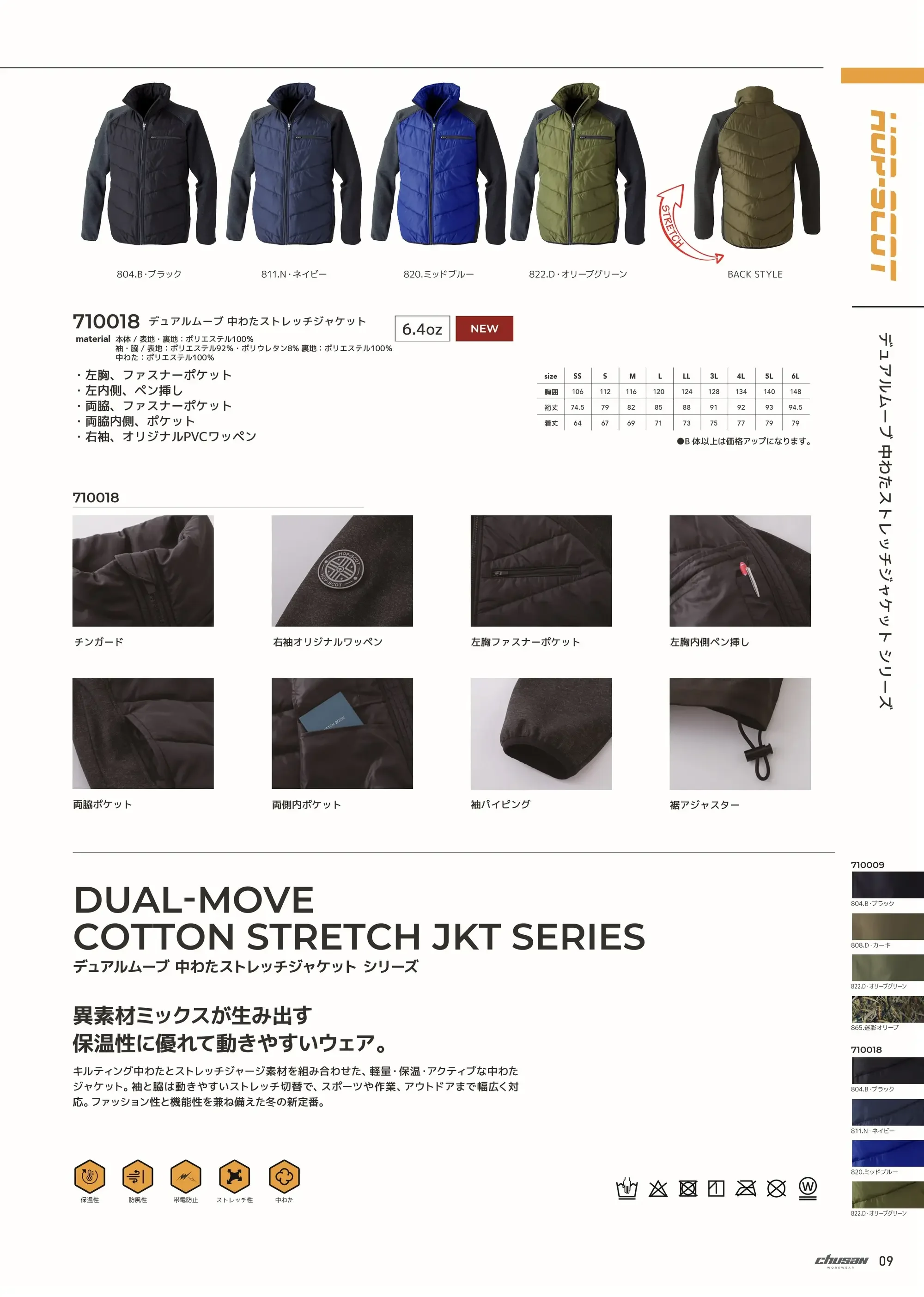 素材特長 | 保温性・防風・帯電防止・ストレッチ・中綿・生地厚6.4oz |