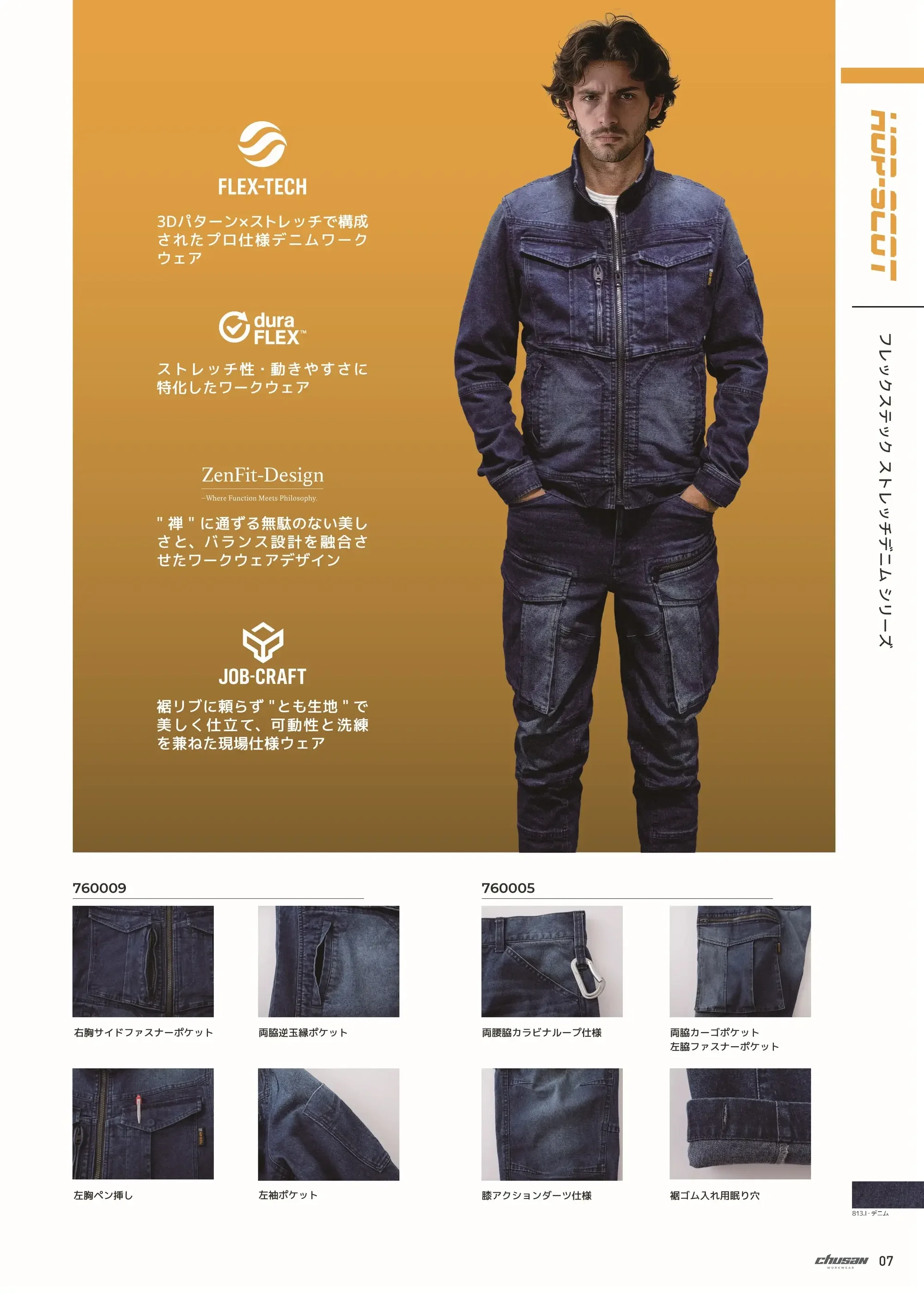 760005 フレックステック 3DデニムJOBカーゴパンツ