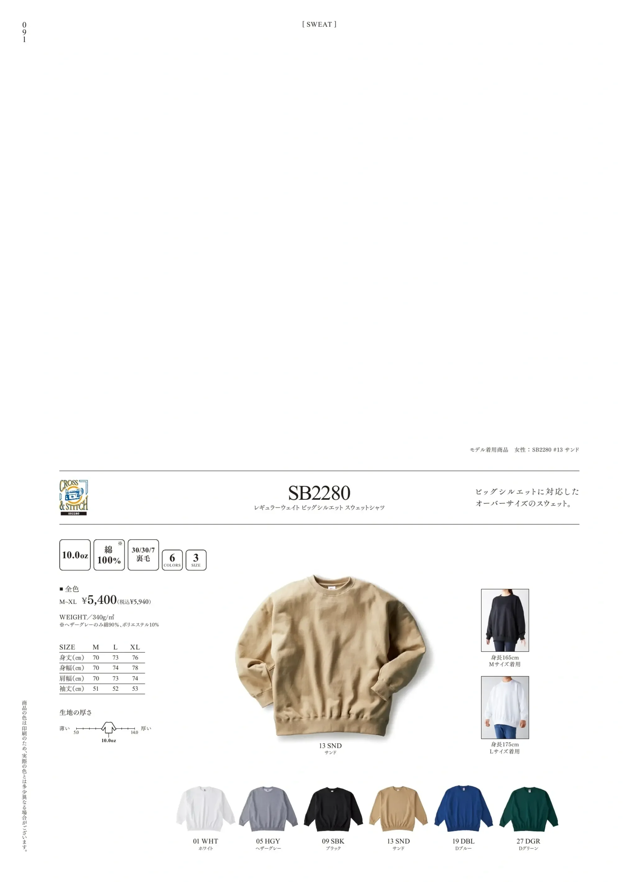 SB2280 レギュラーウェイト ビッグシルエット スウェットシャツ