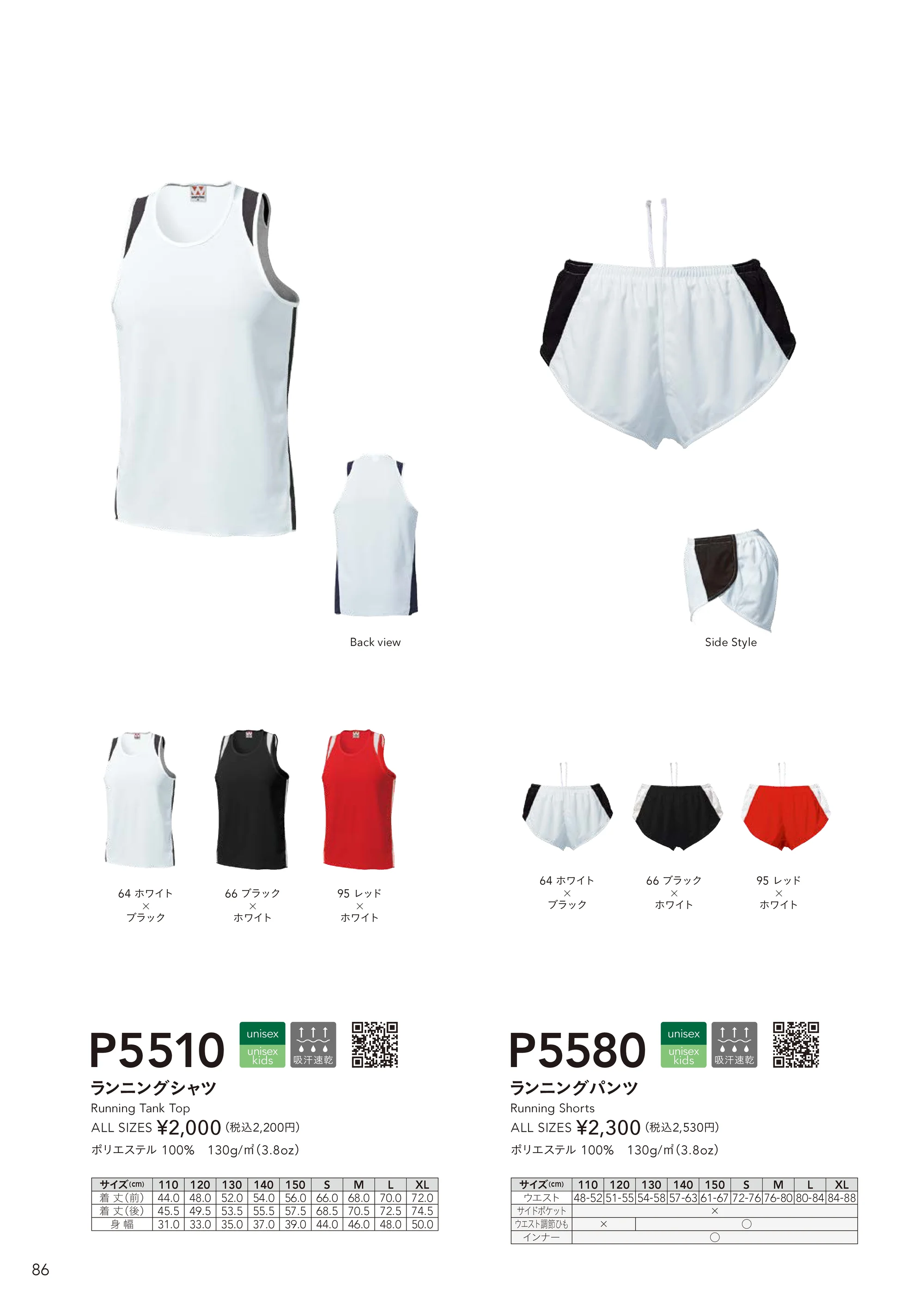 薄くて軽く、陸上競技に最適なシャツとパンツは、選べる3色展開・男女それぞれ7サイズを用意しました!上下セットで揃えられます。