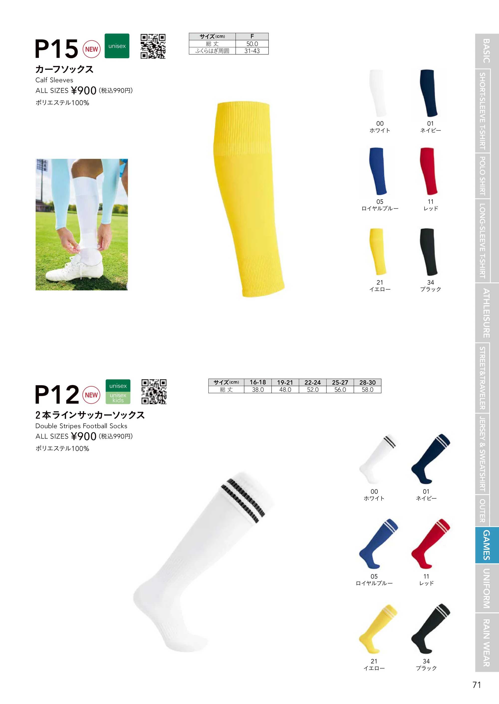 ・カラー:00 ホワイト、01 ネイビー、05 ロイヤルブルー、11 レッド、21 イエロー、34 ブラック