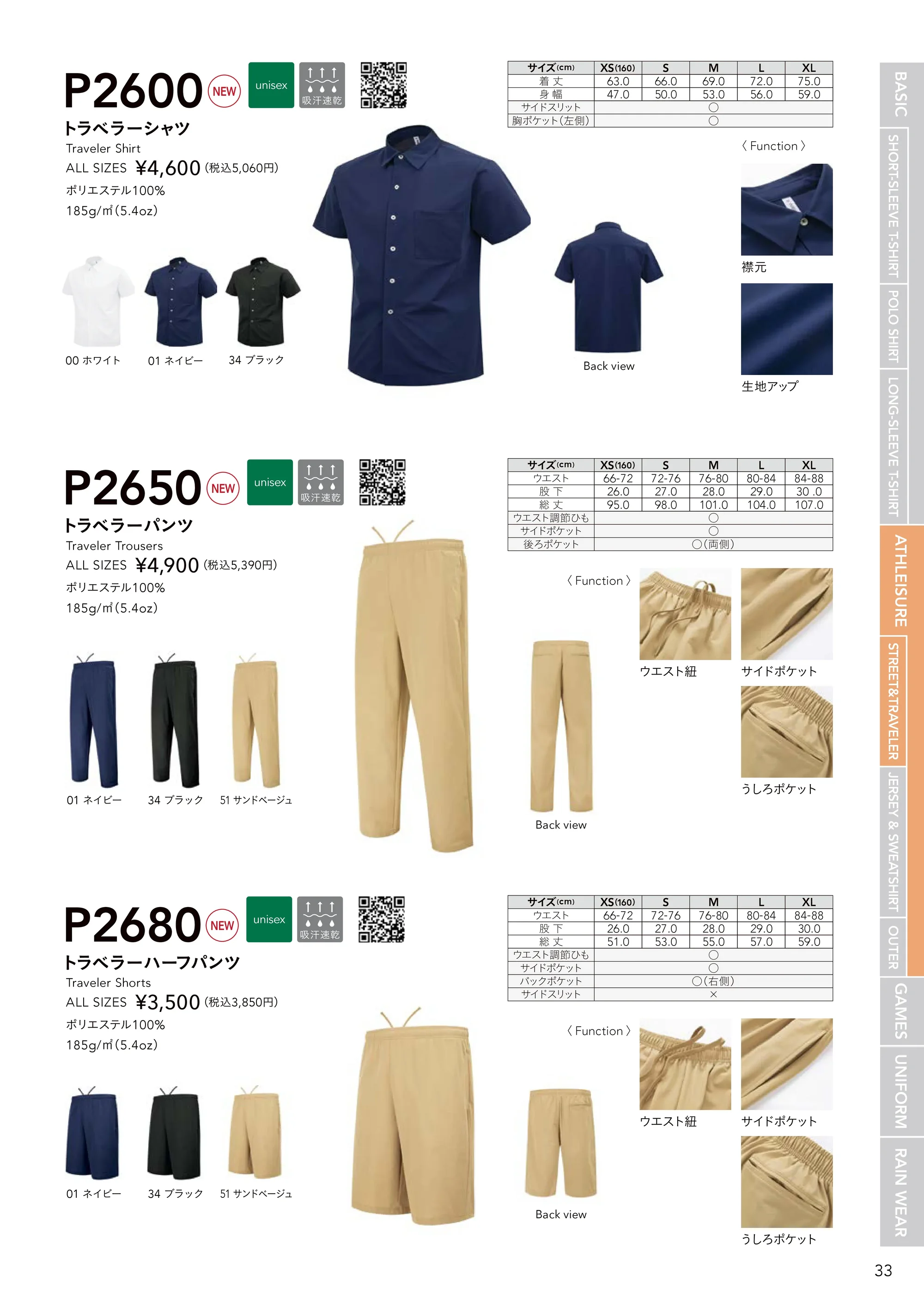 | 素材特長 | 吸汗速乾・185g/m2(5.4oz) |