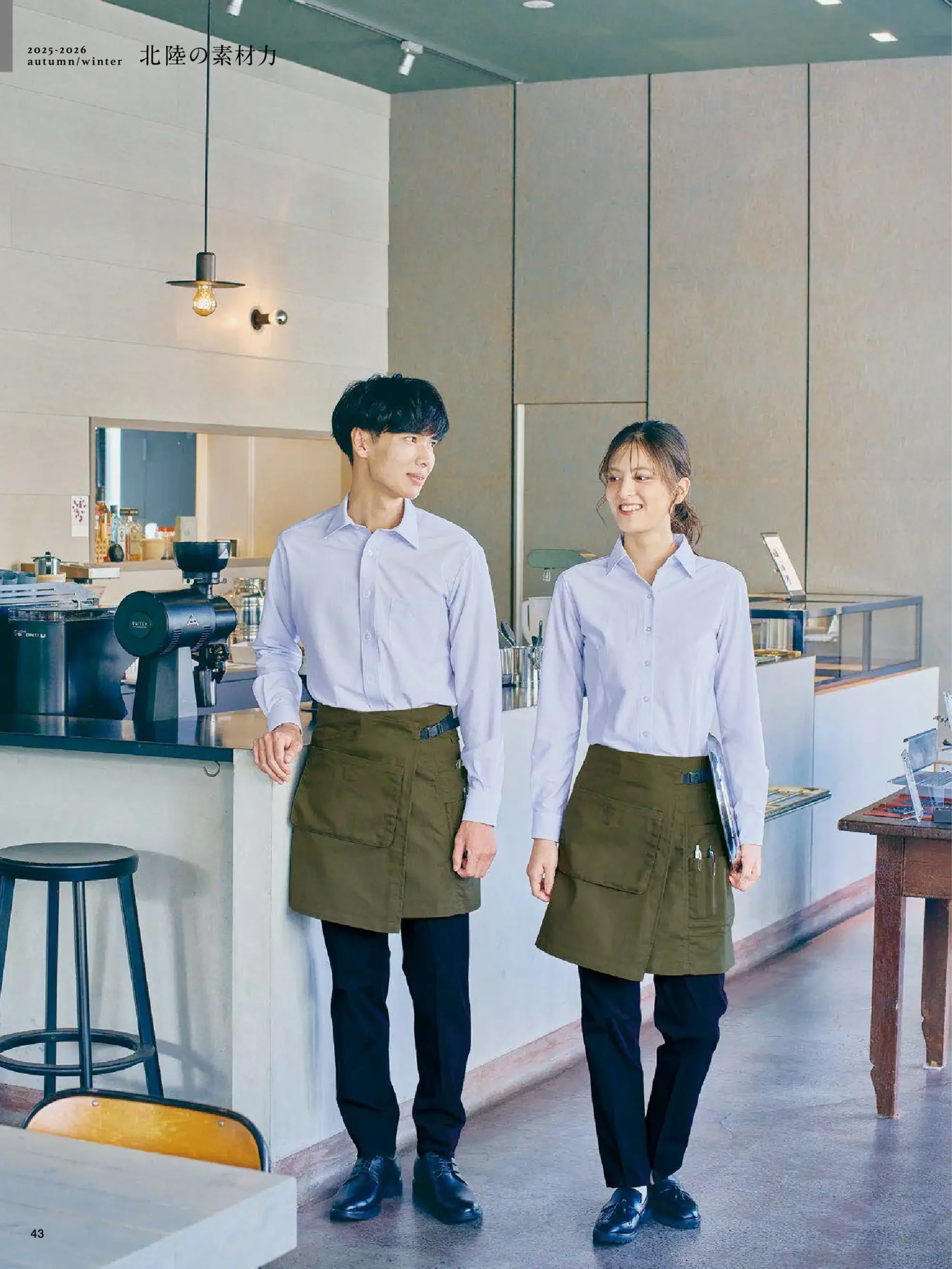 タテにもヨコにも伸びる2WAYストレッチ素材で動きやすく、さまざまなシーンで働く人々に寄り添います。