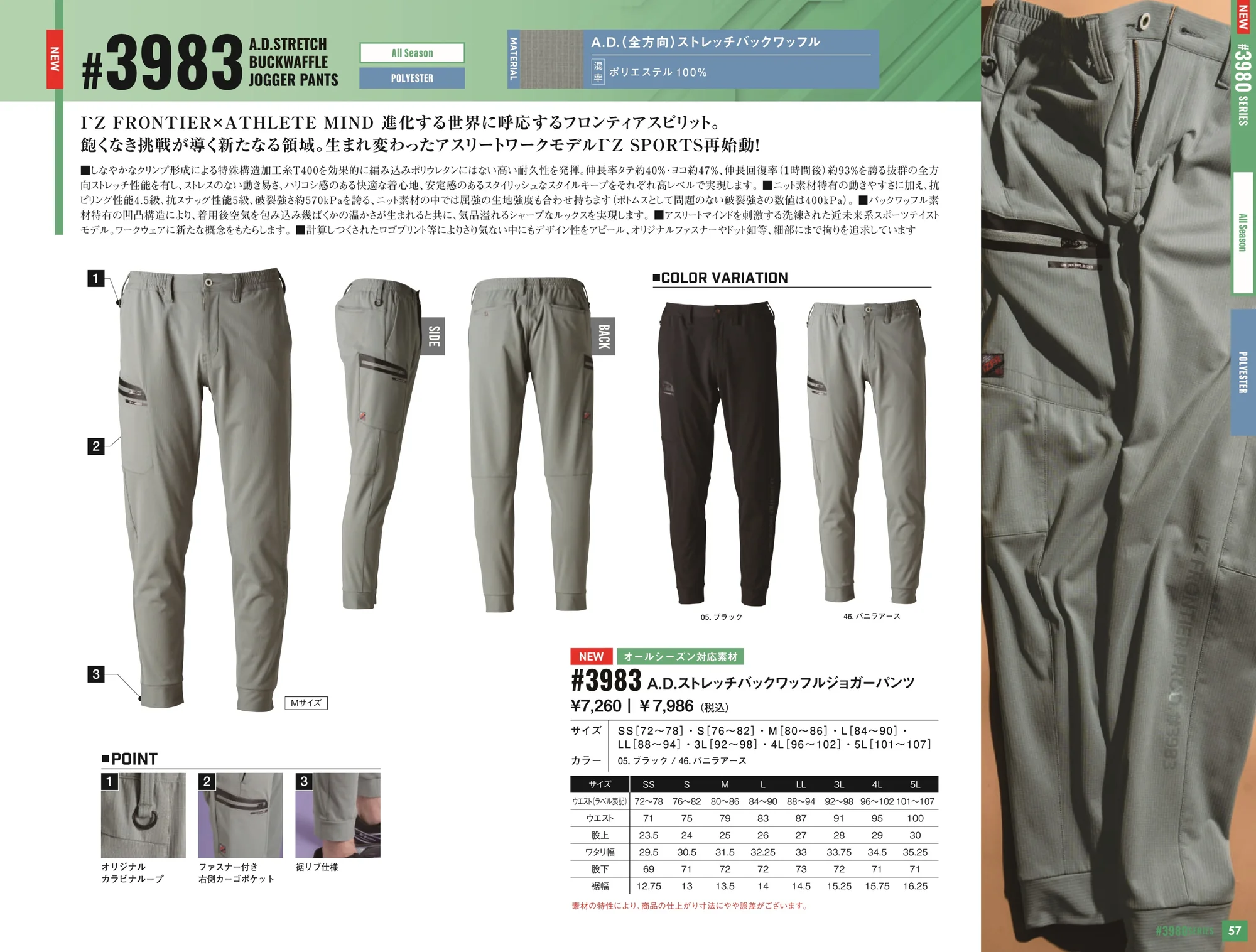 I’Z FRONTIER #3983 A.D.ストレッチバックワッフルジョガーパンツ