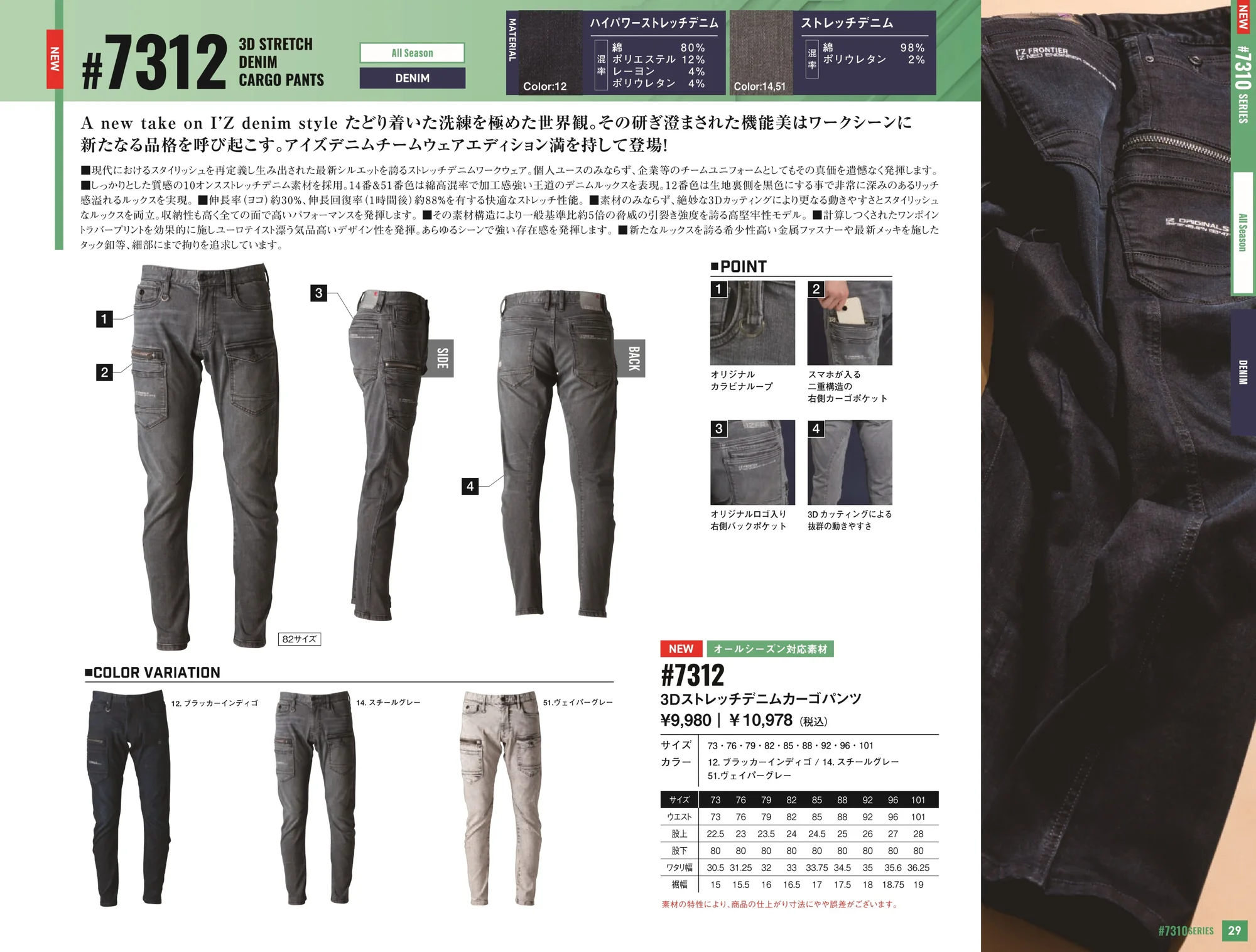 I’Z FRONTIER #7312 3Dストレッチデニムカーゴパンツ