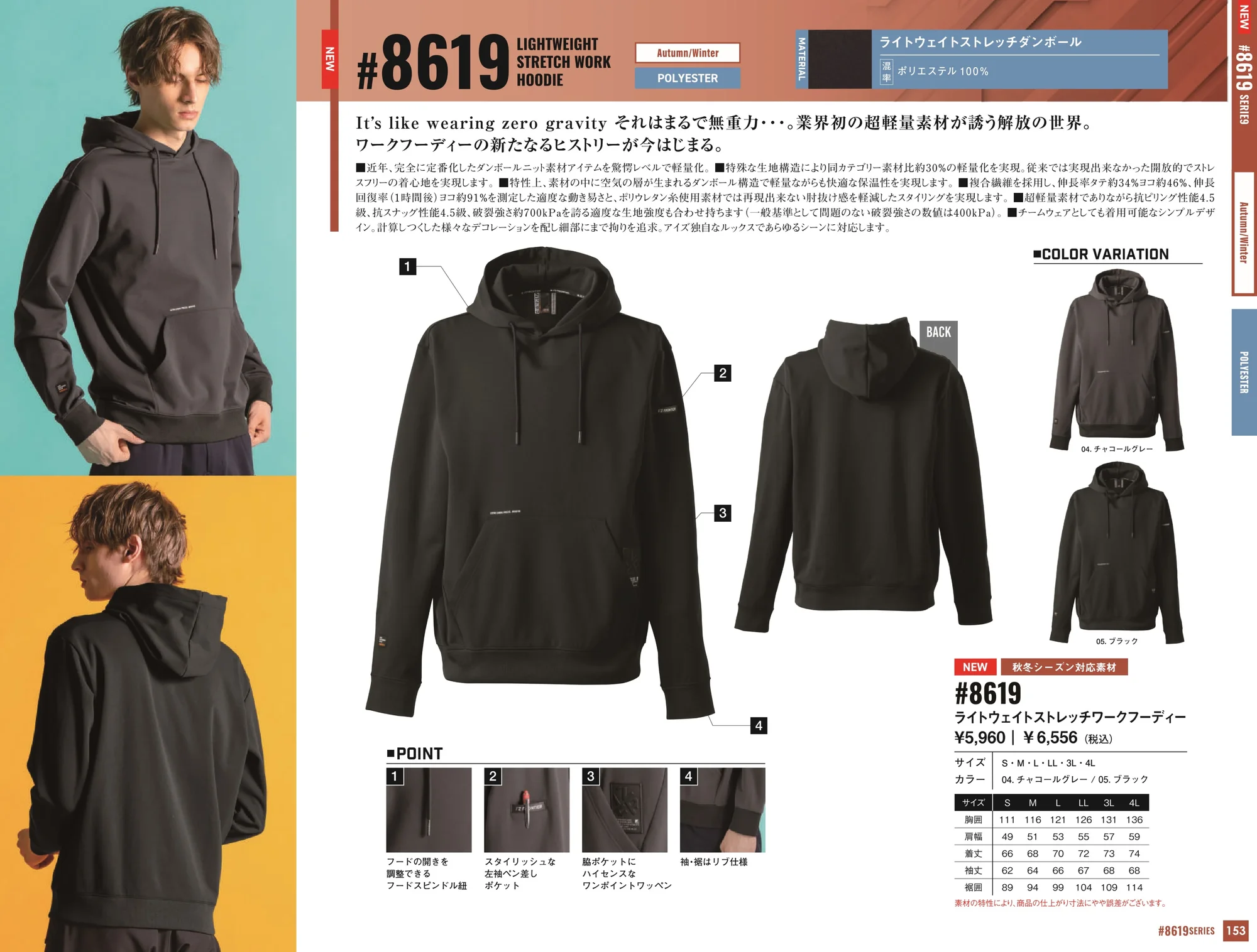 It’s like wearing zero gravity それはまるで無重力・・・。業界初の超軽量素材が誘う解放の世界。ワークフーディーの新たなるヒストリーが今はじまる。