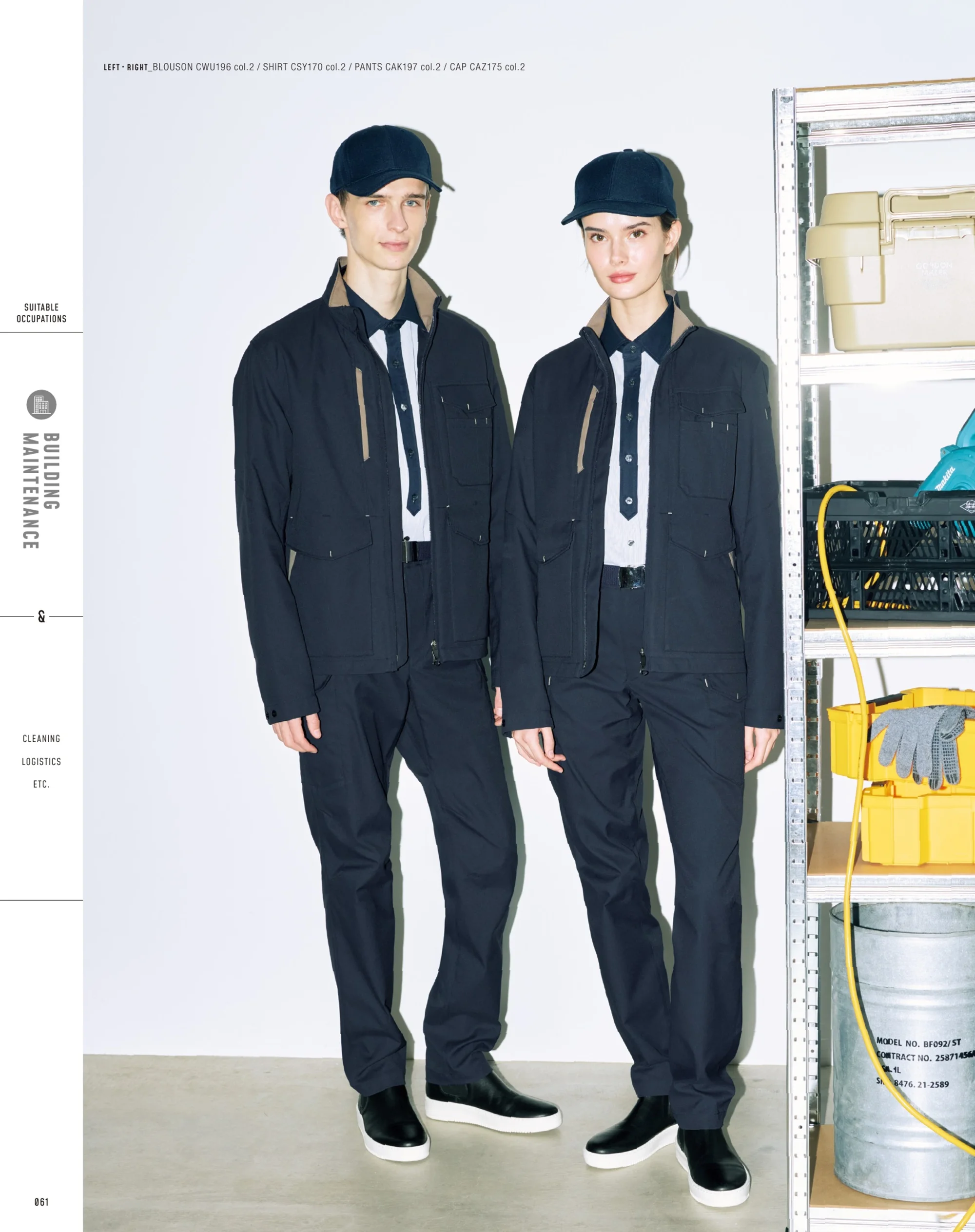 着心地や動きやすさを追求した素材とパターン設計。ビルメンテナンスなどのワークシーンに不可欠な機能を詰め込んで、スタイリッシュなデザインに落とし込んだ、JIST8118適合の静電気帯電防止ウェアです。