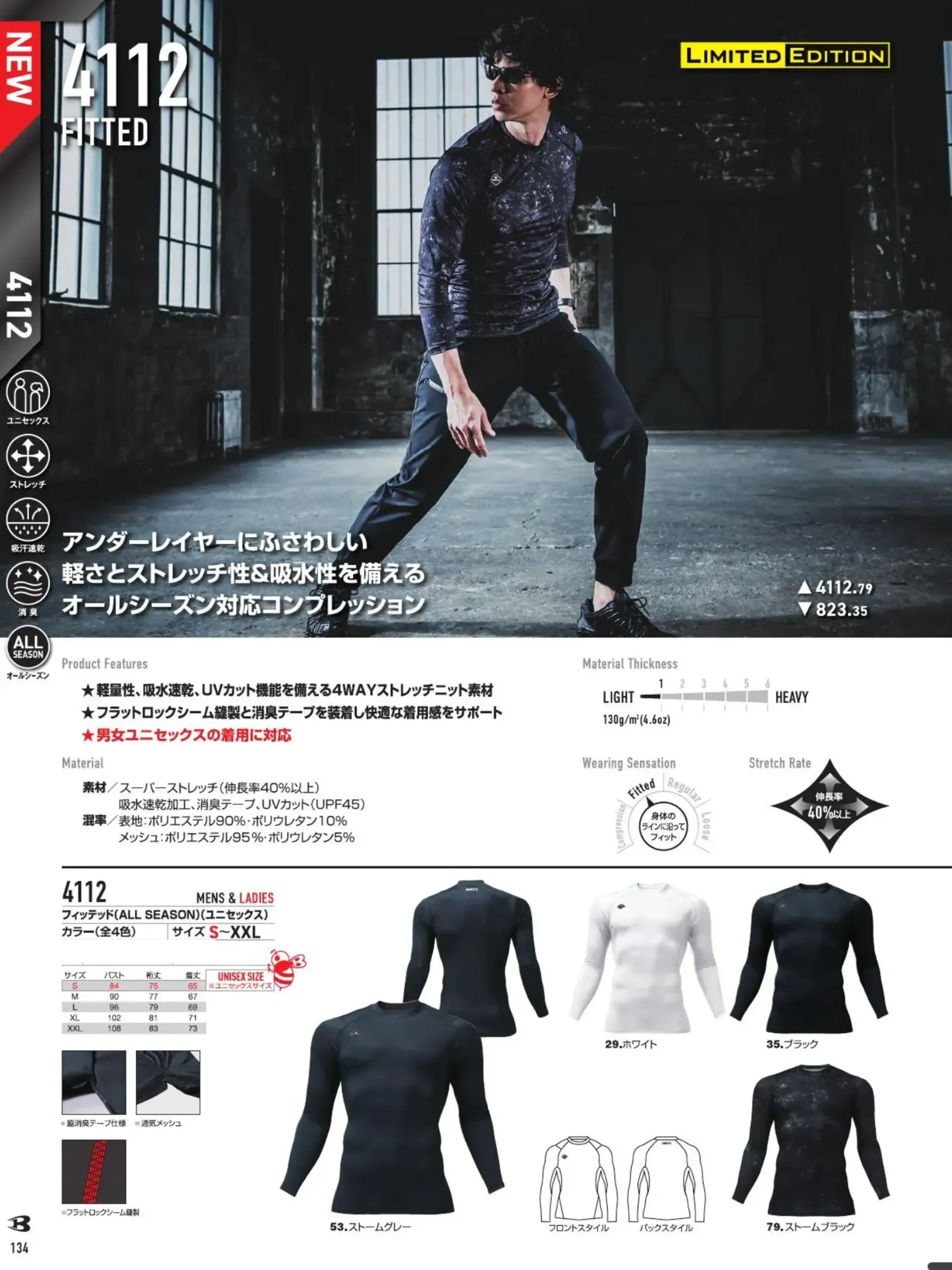 バートル 4112 フィッテッド オールシーズン対応 コンプレッションシャツ