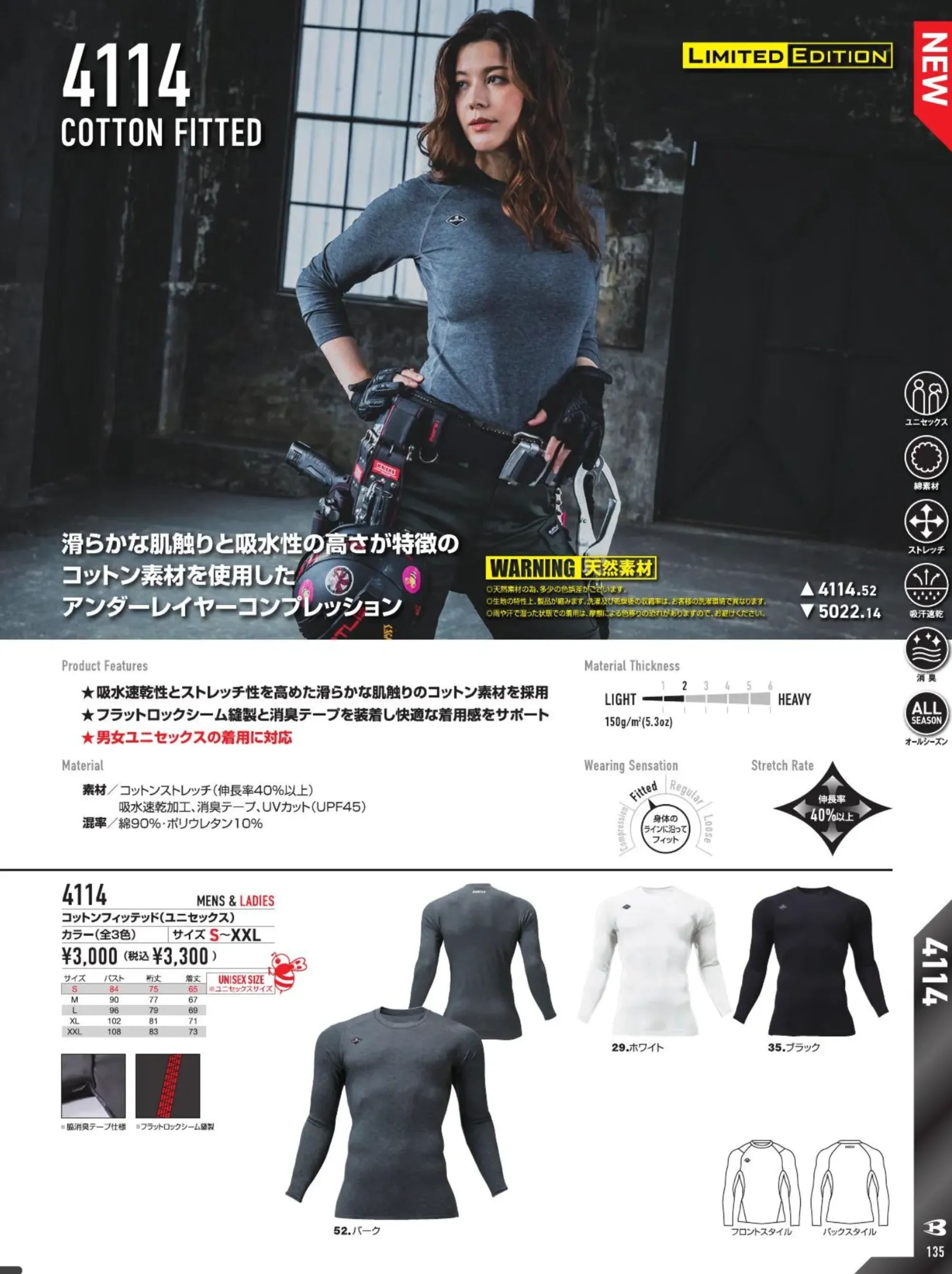 バートル 4114 コットンフィッテッド オールシーズン対応 コンプレッションシャツ