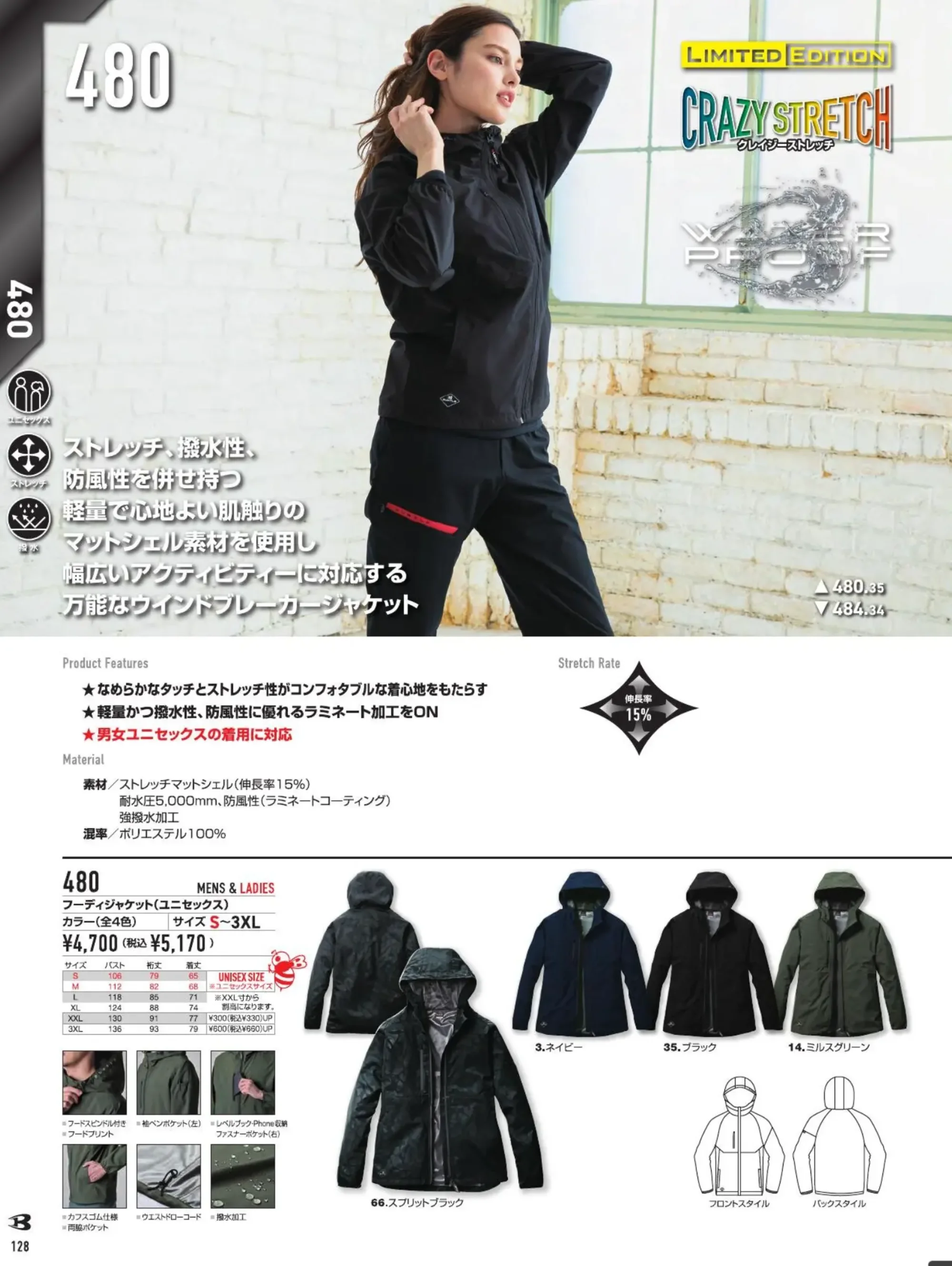 素材特長 | 4WAYストレッチ 吸水速乾性 軽量 |