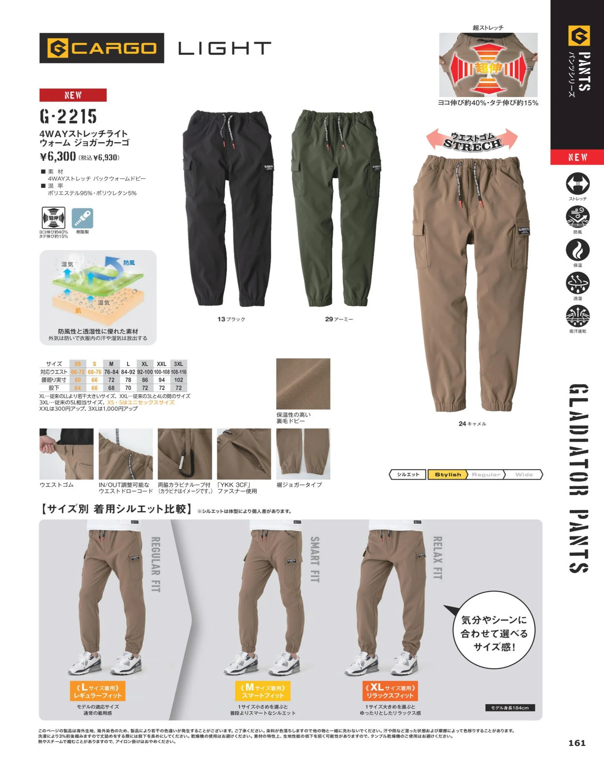 G-2215 4WAYストレッチライトウォームジョガーカーゴ