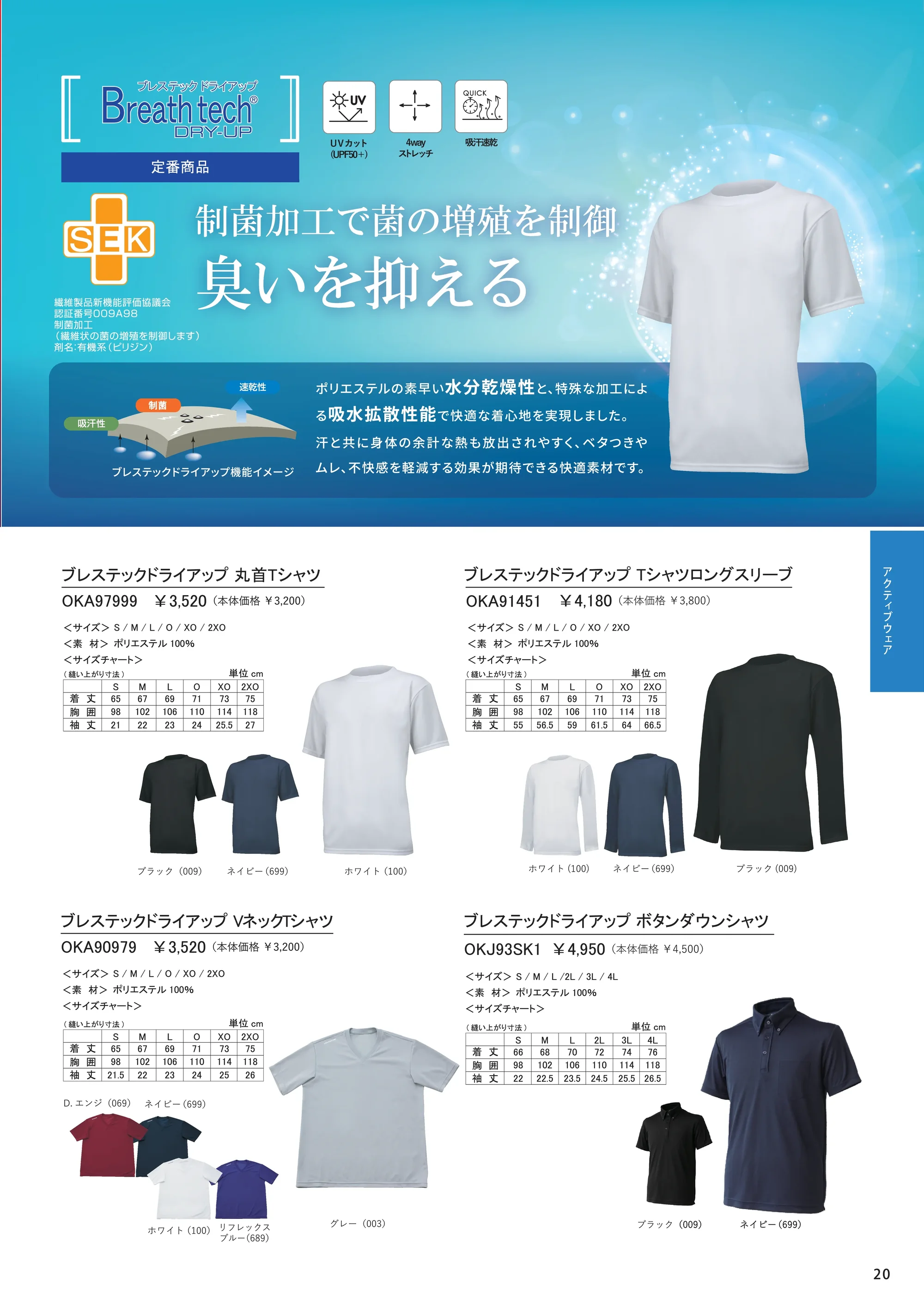 | 素材特長 | ブレステックドライアップ加工・UVカット(UPF50+)・4wayストレッチ・吸汗速乾 |