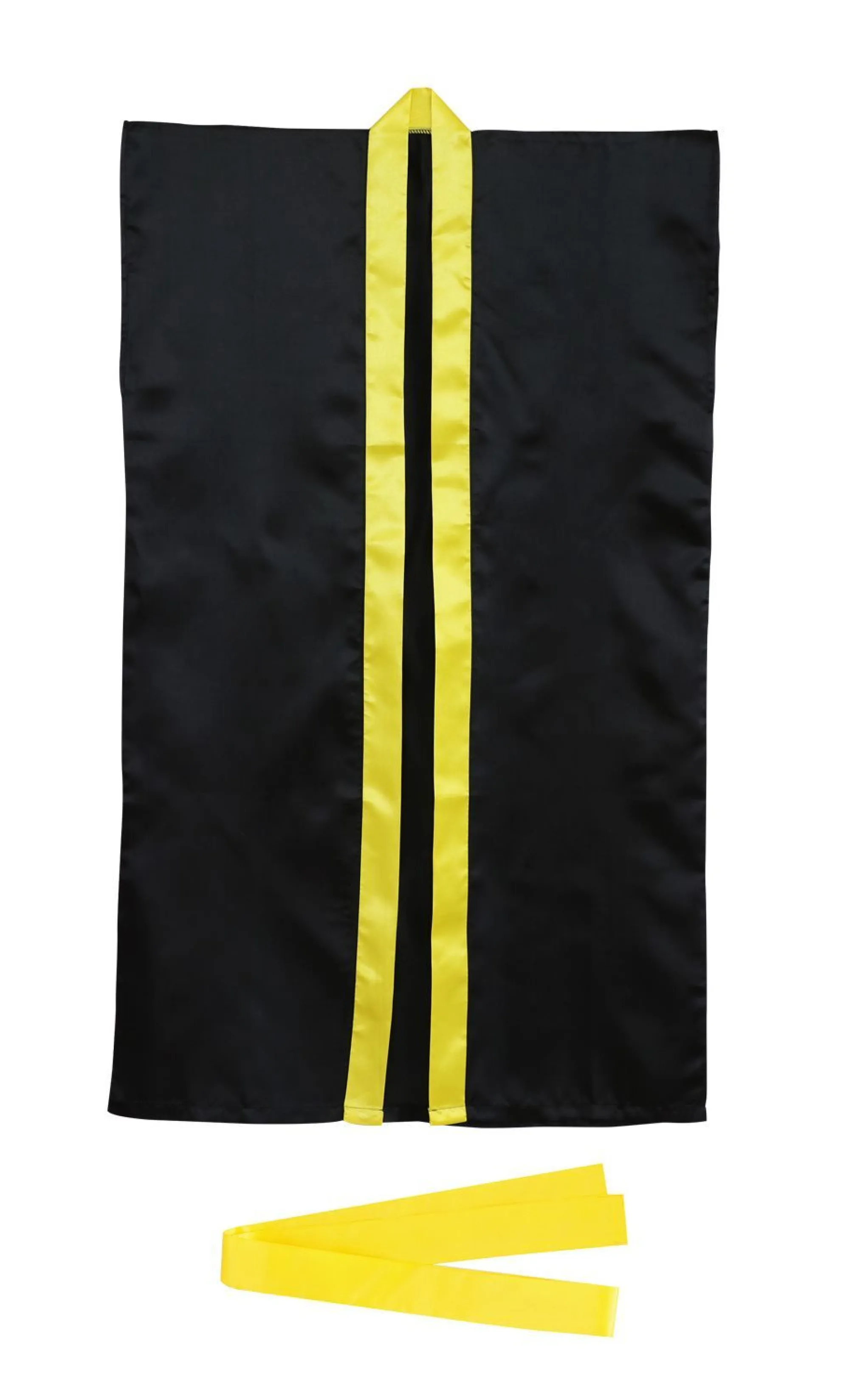 ソフトサテンロングハッピ S 黒/黄襟 (ハチマキ付)