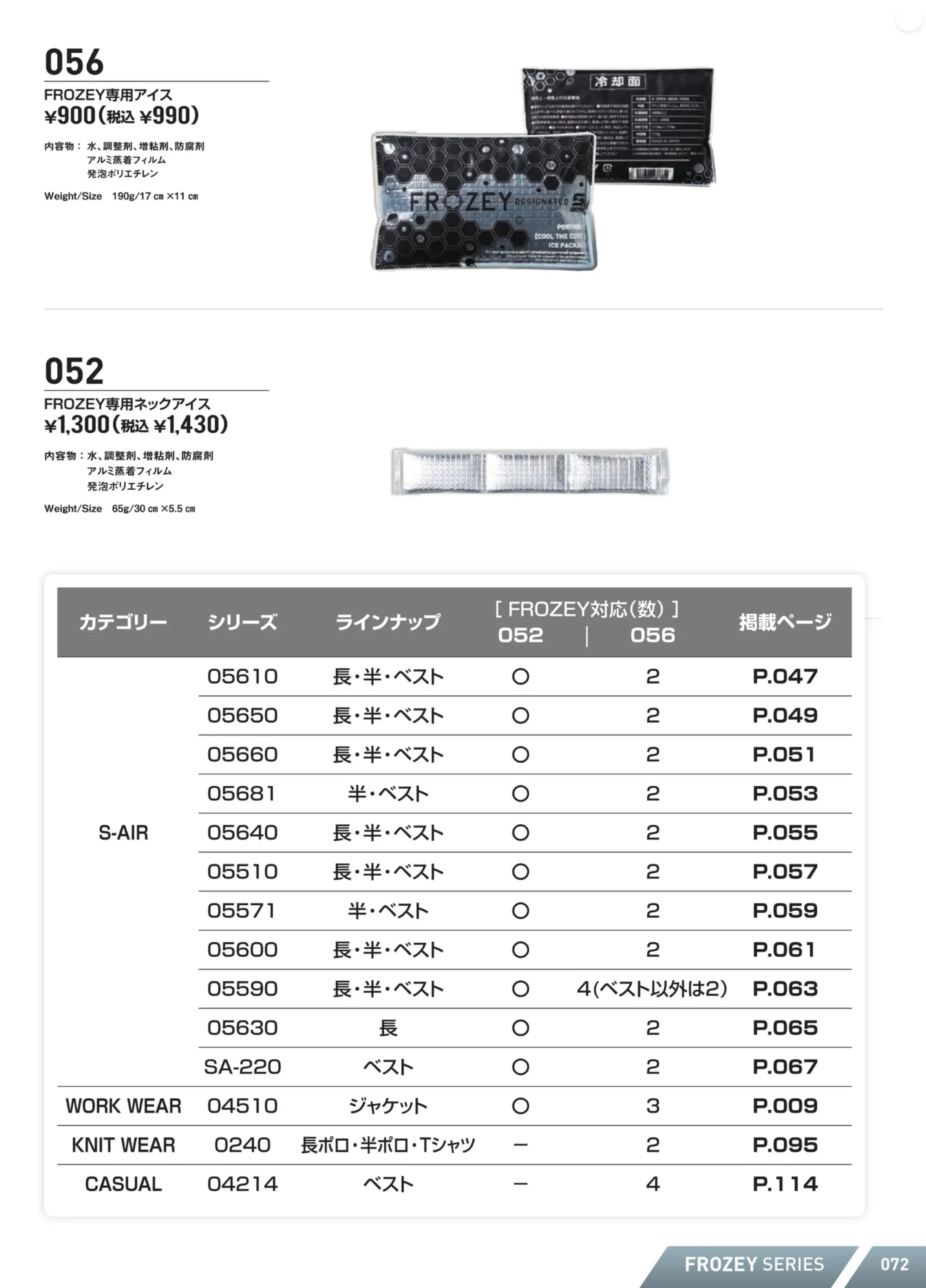 | 形状特長 | ベストタイプ ワイドネック設計 保冷剤ポケット3か所(背中×2、衿裏) サイドファン 左胸面ファスナーポケット |