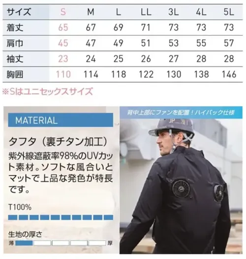 サイズ:S~5L 背中上部ファン内蔵 左袖ペン差し |