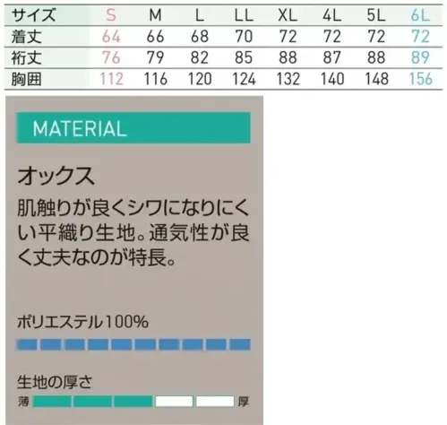 サイズ:S~6L 両袖ペン差し付 両脇ファスナーポケット |