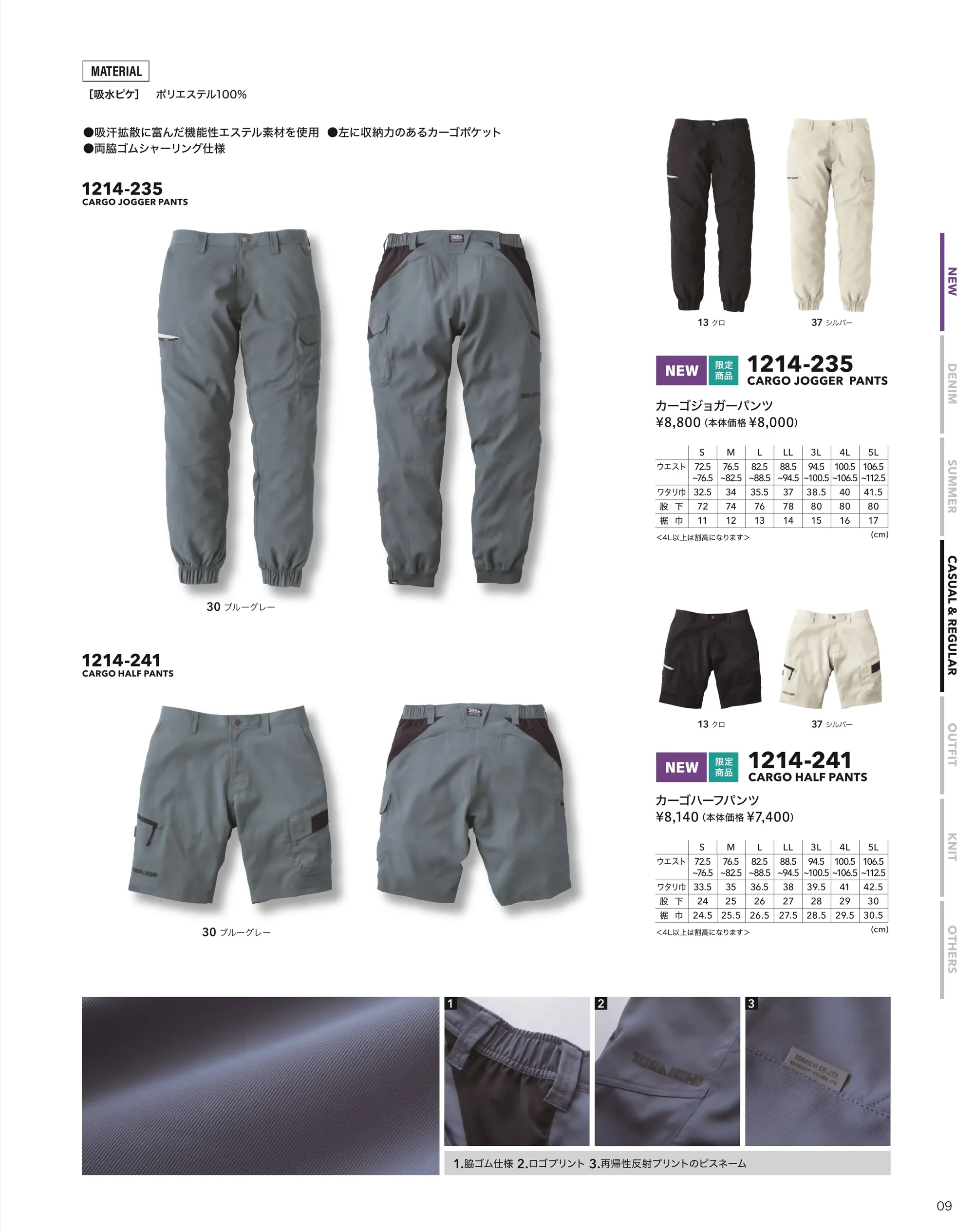 吸汗速乾性に優れたポリエステル100%素材を採用したサマーモデル。軽量かつストレッチ性を備え、両脇ゴムシャーリング仕様で快適なフィット感を実現。現場作業からデイリーまで軽快に動ける一本です。