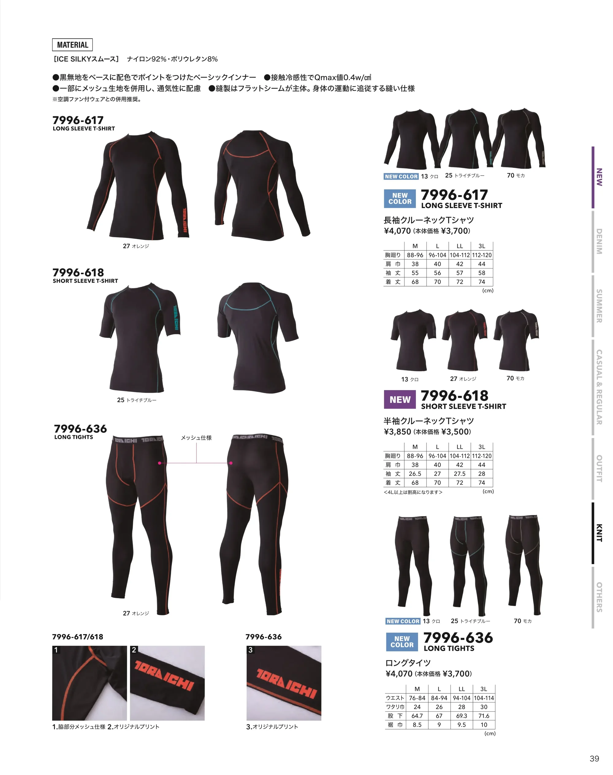 7996 SERIES ICESILKYの半袖クルーネックTシャツ。接触冷感Q-max0.4W/cm2の超冷感シルキータッチ素材とナイロン92%のなめらかな風合いで、着た瞬間からひんやり快適。吸汗速乾機能と脇メッシュ仕様により、真夏の作業でもムレを抑えた爽やかな着心地を実現します。