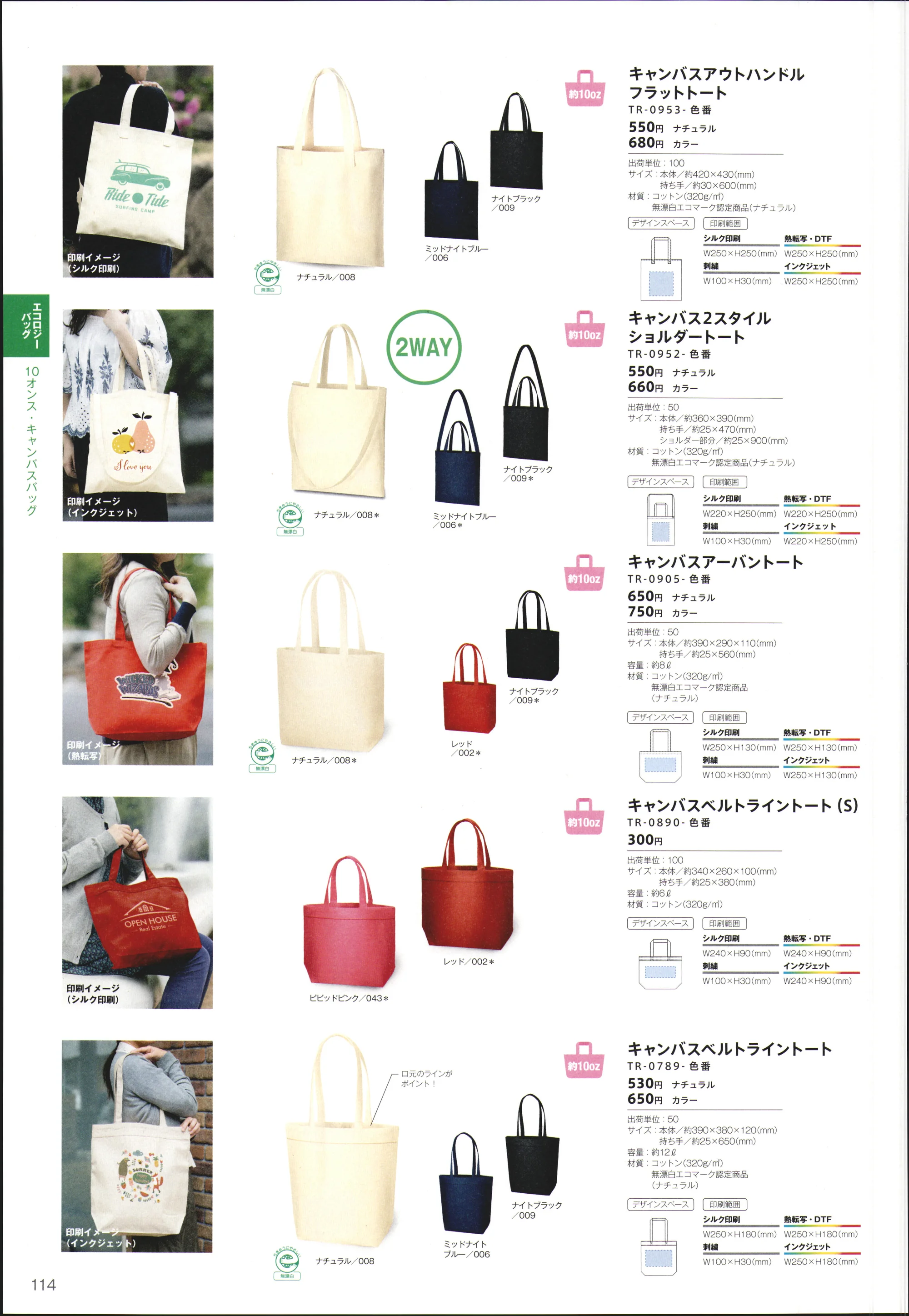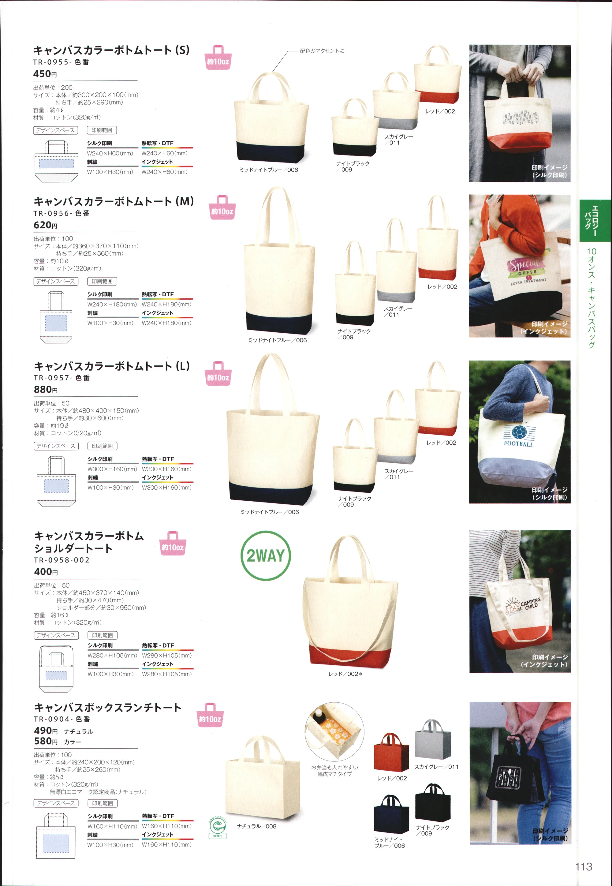 マルチシーンで使いやすいスタンダードデザインから、配色トートまでラインナップも豊富です。