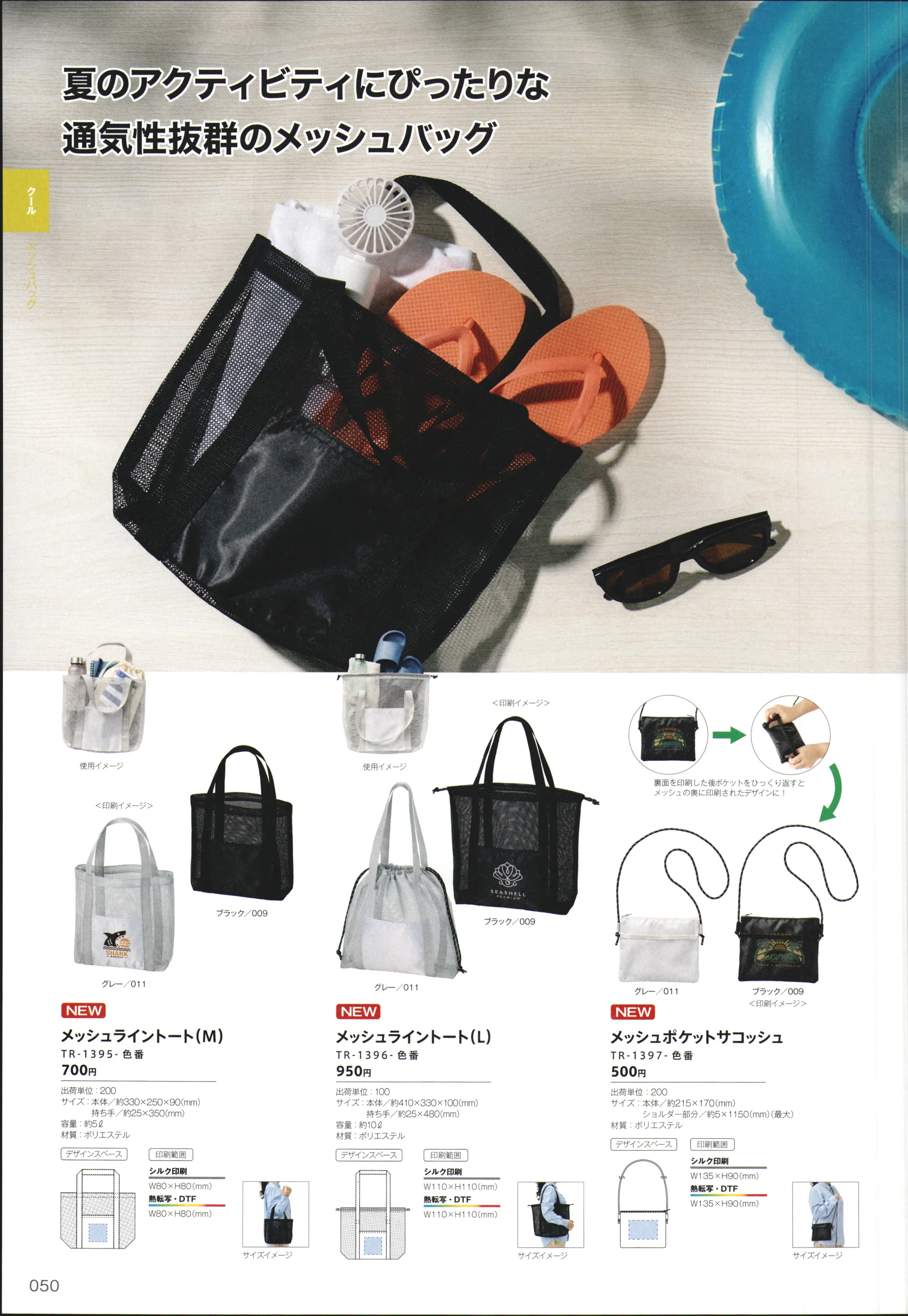 夏のアクティビティにぴったりの通気性抜群のメッシュバッグ