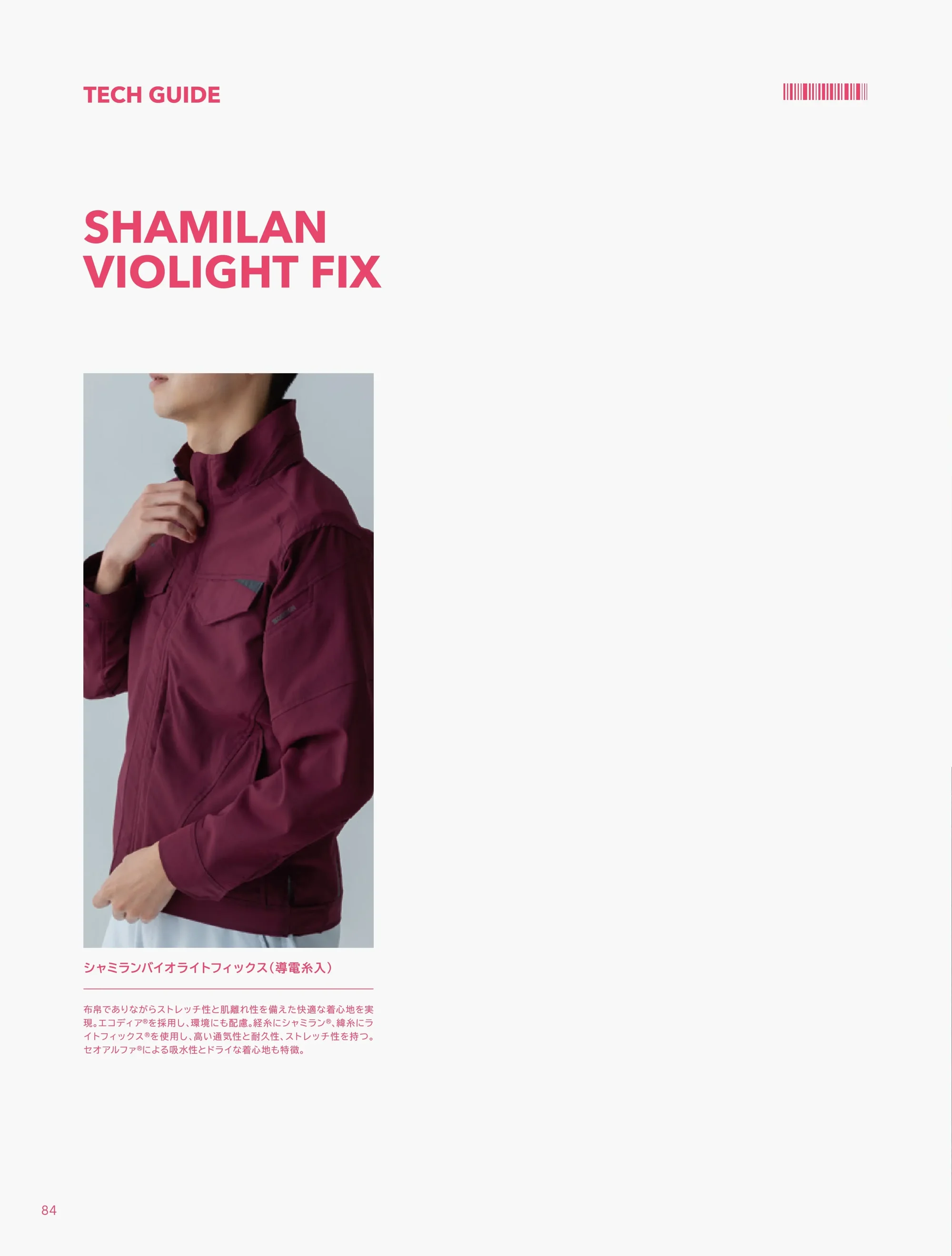 JIS T8118規格適合の静電気帯電防止作業服。導電糸入りシャミランバイオライトフィックス素材を採用しポリエステル100%でありながら高い通気性とストレッチ性を実現。平均重量310gの軽量設計で春夏の現場でも軽やかでドライな着心地が続きます。