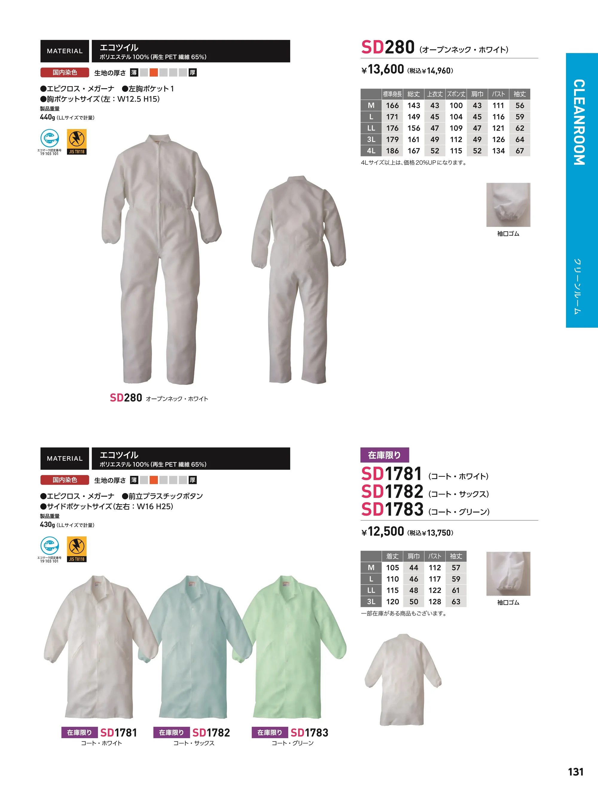 | 素材特長 | エピクロス・メガーナ、帯電防止素材、リサイクル素材 ※順次、エコ素材に変更になります。 |