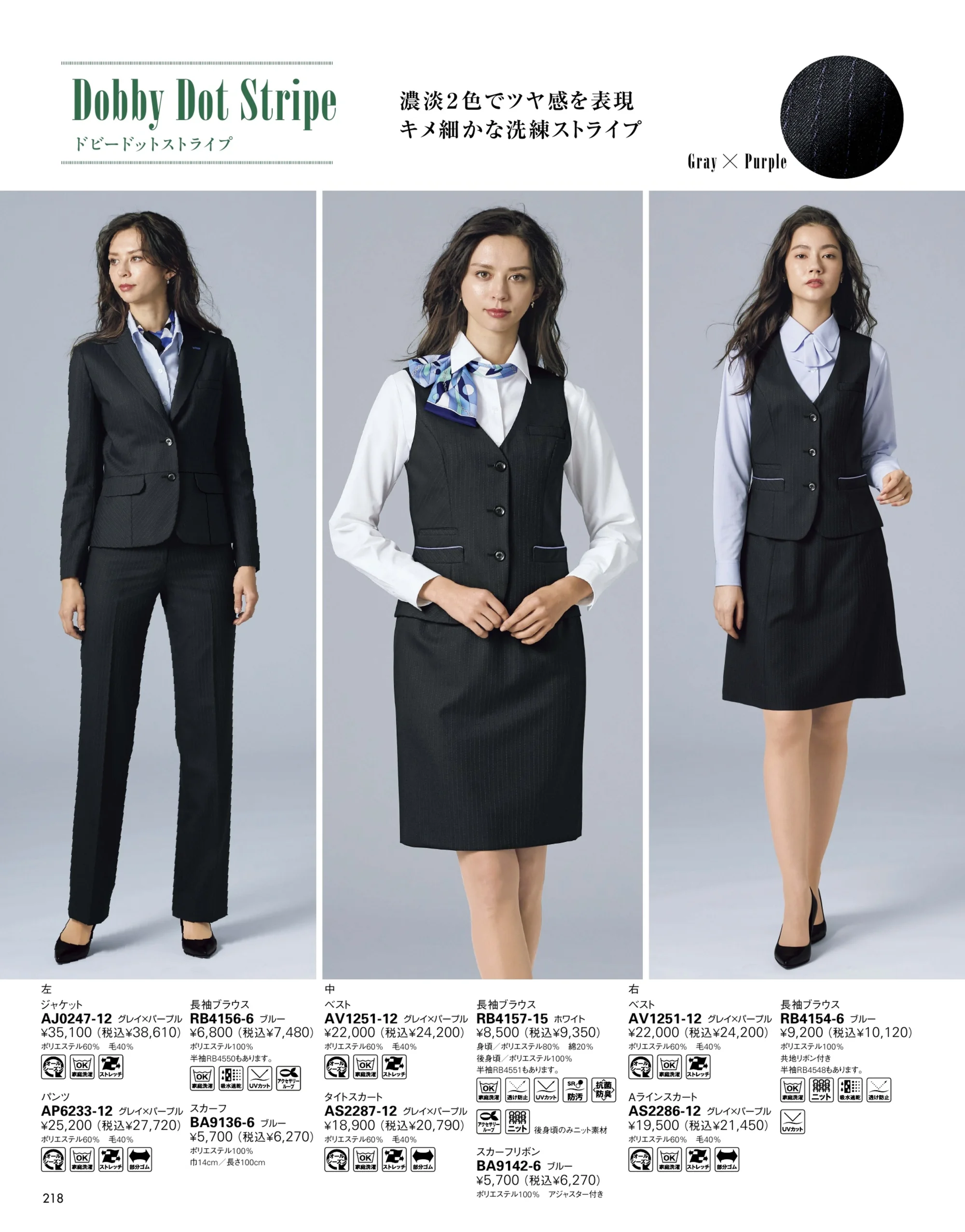 ダークカラーにパープルが印象的。ストライプと同系色の裏地やカラーホール(ジャケット)を施しました。さりげないカラーアクセントが着る人の気分を上げてくれます。