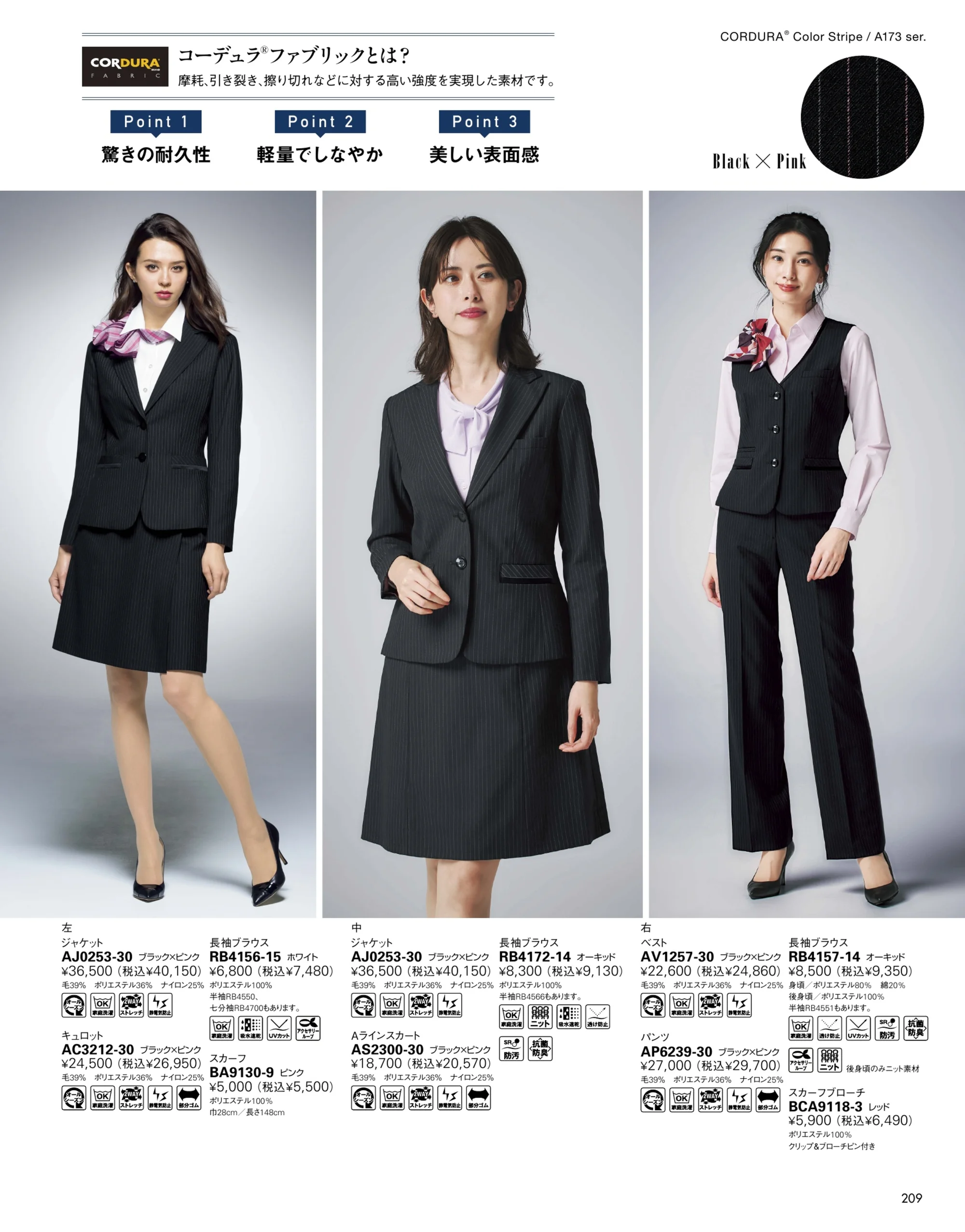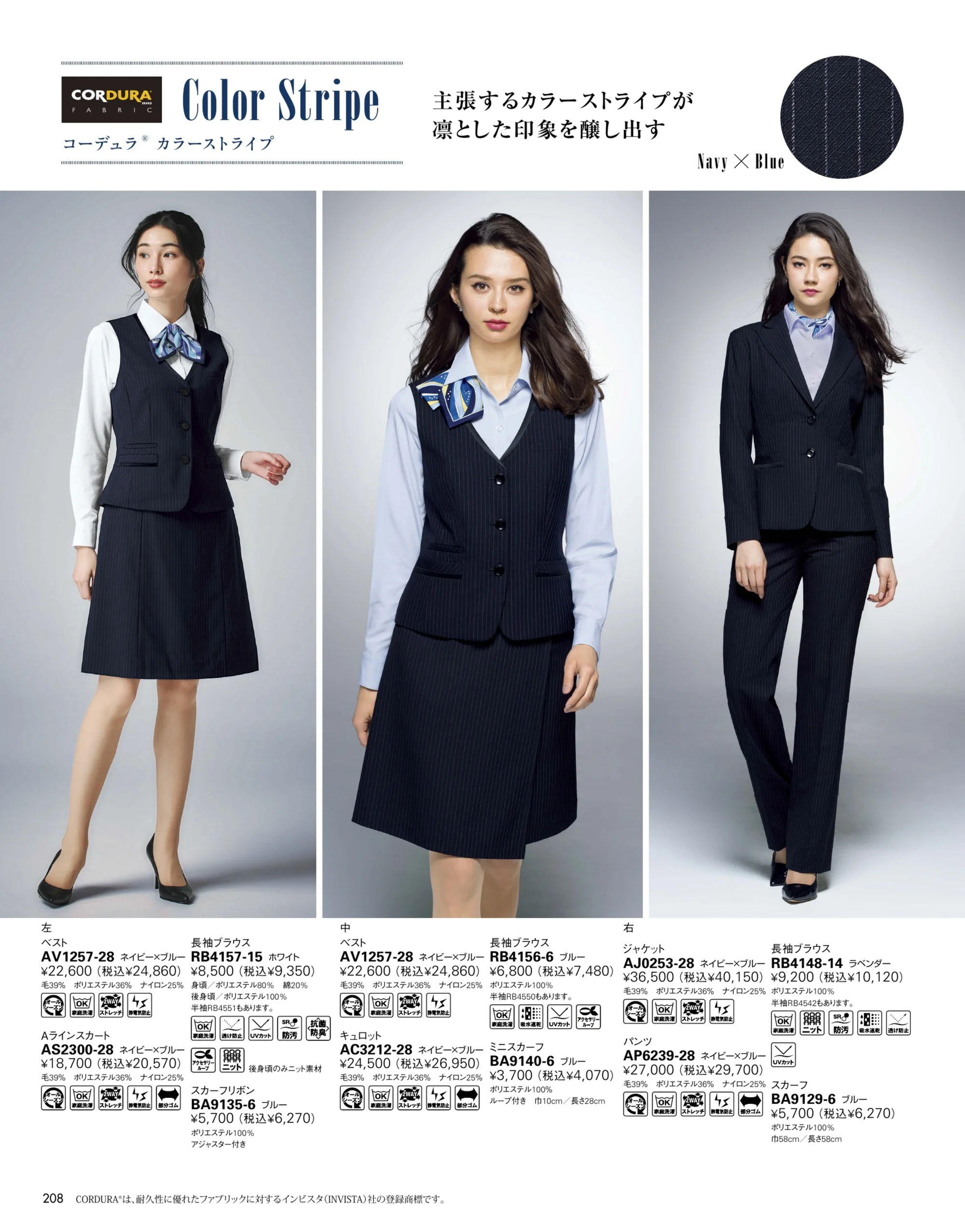 しなやかで強いコーデュラファブリックを使用したピンストライプスーツは、清潔感のあるカラーストライプとサテンの光沢で洗練された女性を表現。企業の品格を高めるスタイルを創ります。