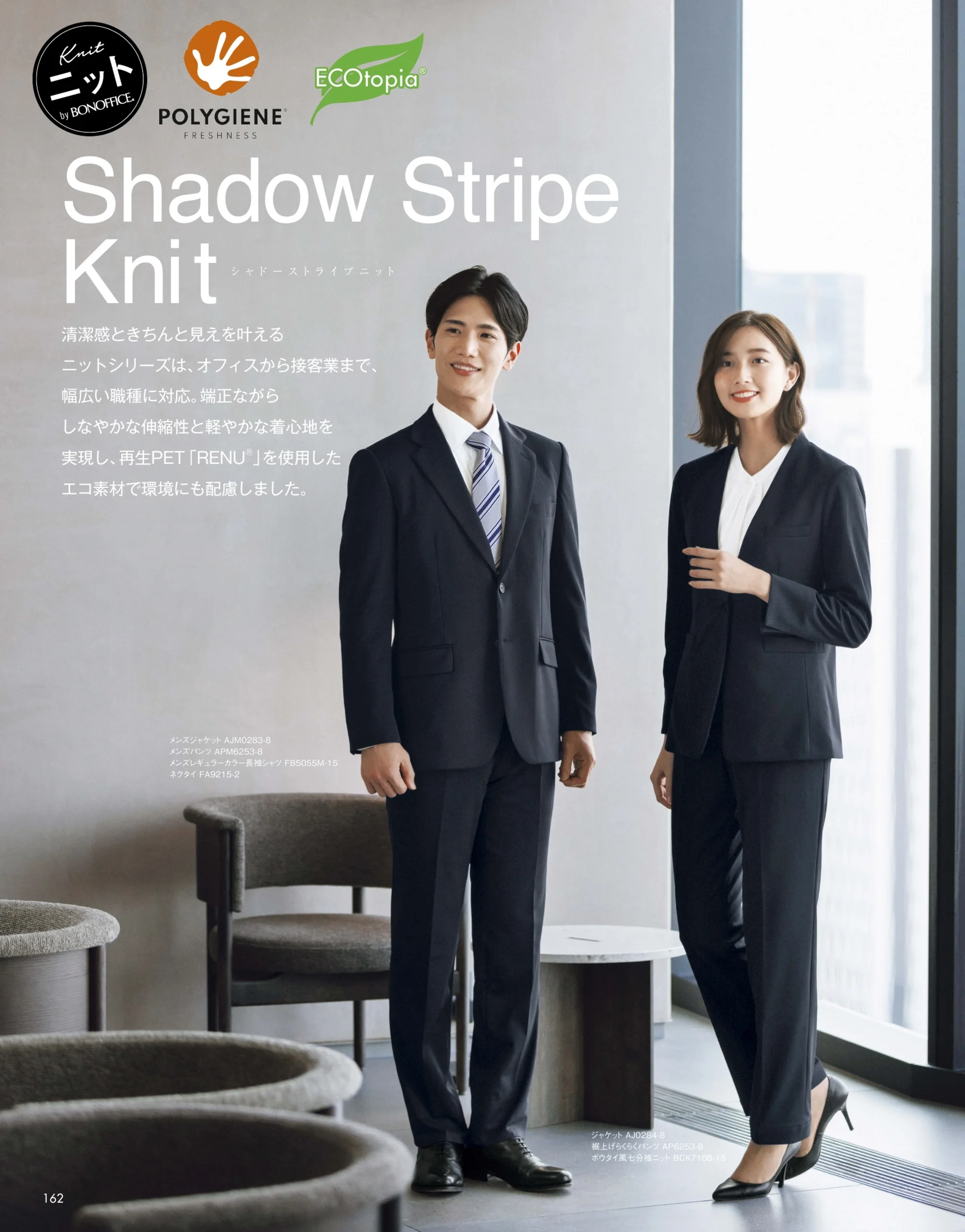清涼感ときちんと見えを叶えるニットシリーズは、オフィスから接客業まで、幅広い職種に対応。端正な柄しなやかな伸縮性と軽やかな着心地を実現し、再生PET「RENU®」を使用したエコ素材で環境にも配慮しました。