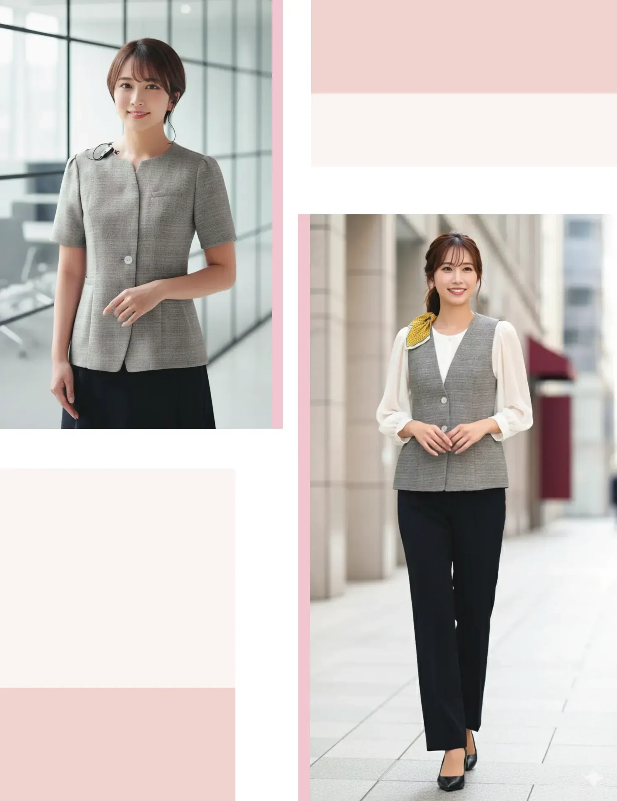 ベーシックなシャツ襟にもデザインブラウスにも合わせやすいシーンで選べる上品ベスト。